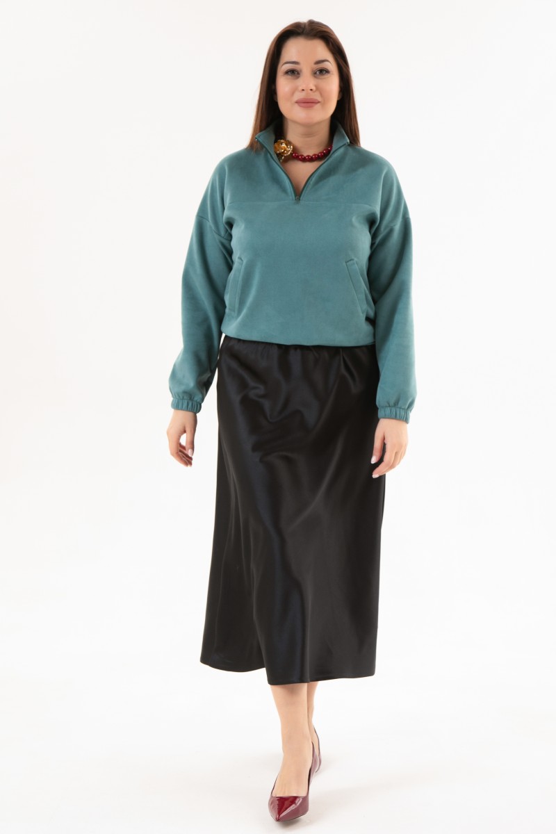 Блузка женская из искусственной замши с длинным рукавом и воротником стойкой.