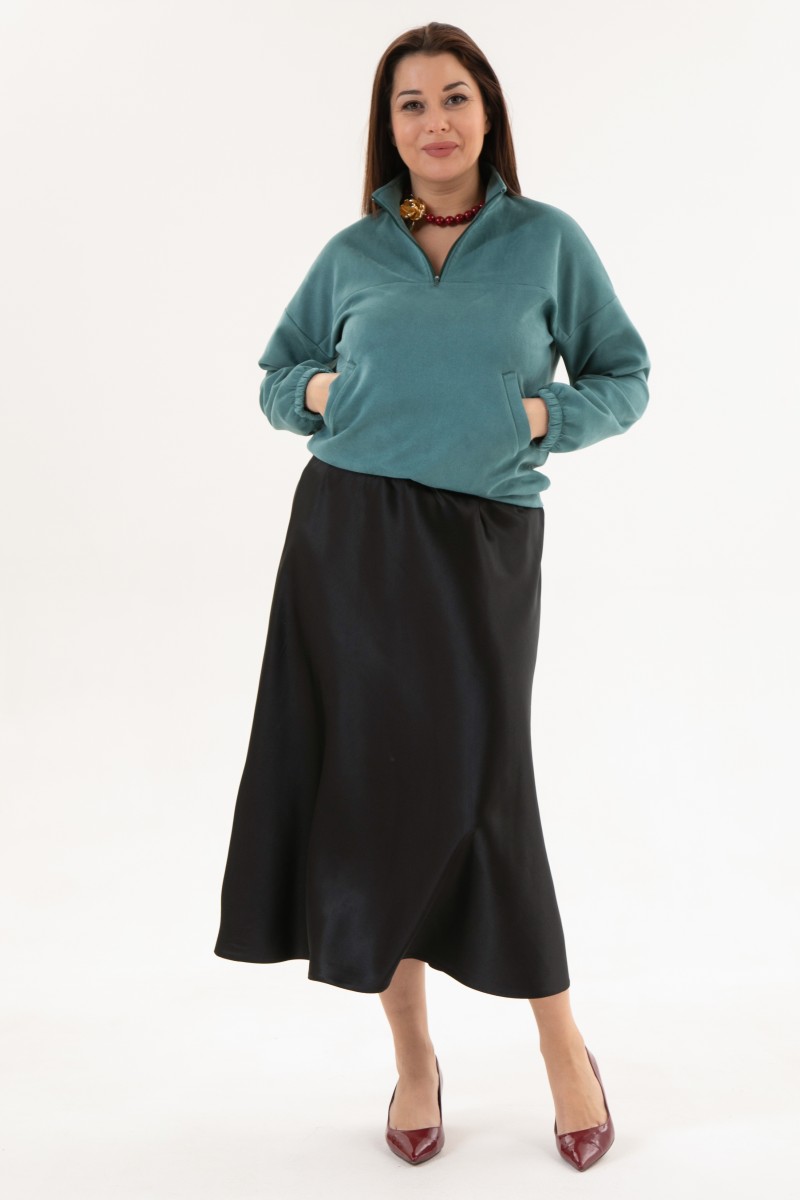 Блузка женская из искусственной замши с длинным рукавом и воротником стойкой.На переде кокетка и застежка на молнию.Блузка с функциональными карманами.