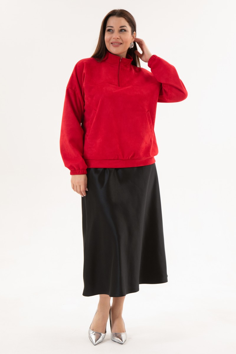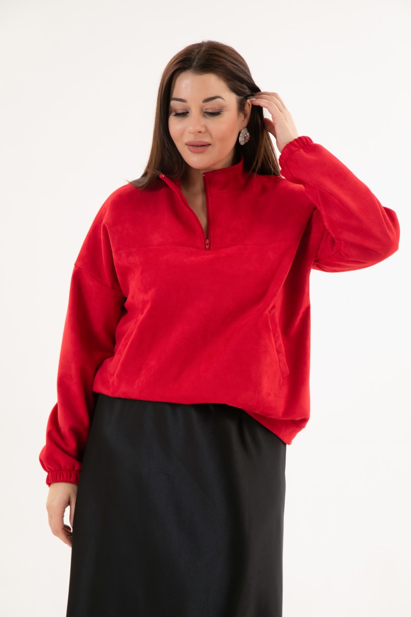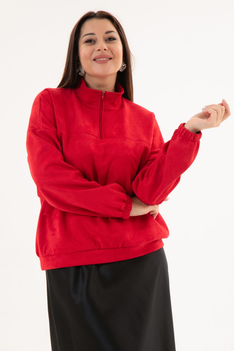 Блузка женская из искусственной замши с длинным рукавом и воротником стойкой.