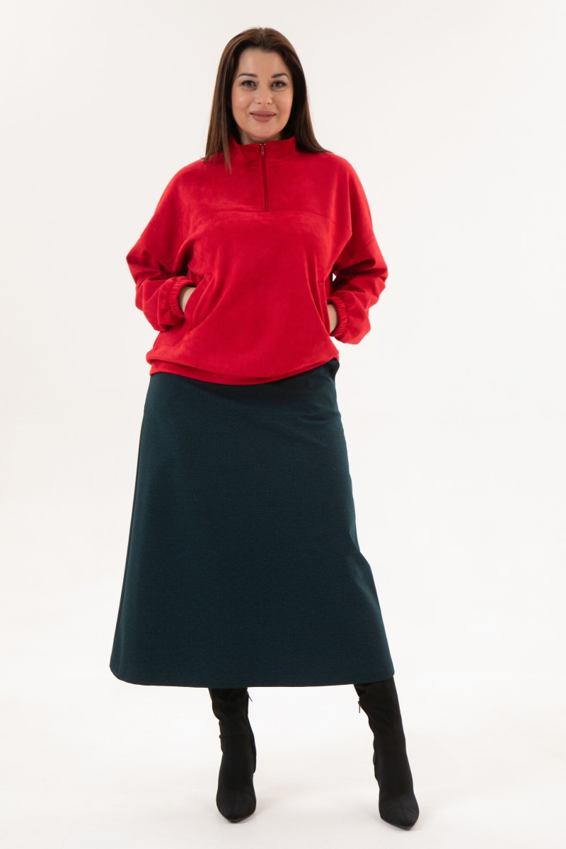 Блузка женская из искусственной замши с длинным рукавом и воротником стойкой.На переде кокетка и застежка на молнию.Блузка с функциональными карманами.