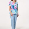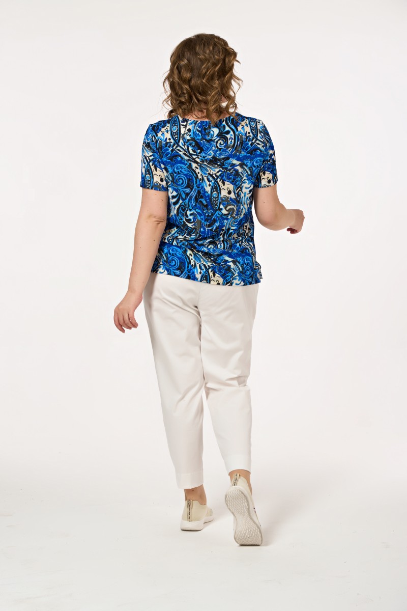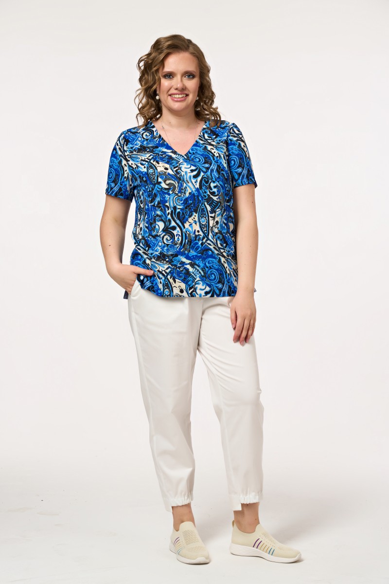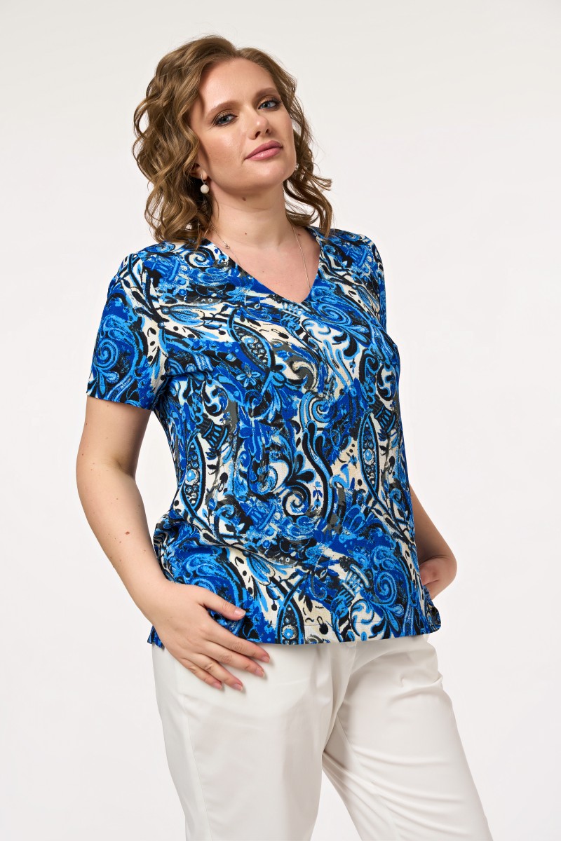 Блузка женская прямого силуэта. По переду вытачки из бокового шва. Горловина V- образной формы. Рукав втачной короткий. Низ ровный с разрезами по бокам.