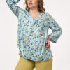 Повседневная блузка прямого силуэта с V-вырезом из модной жатой ткани.