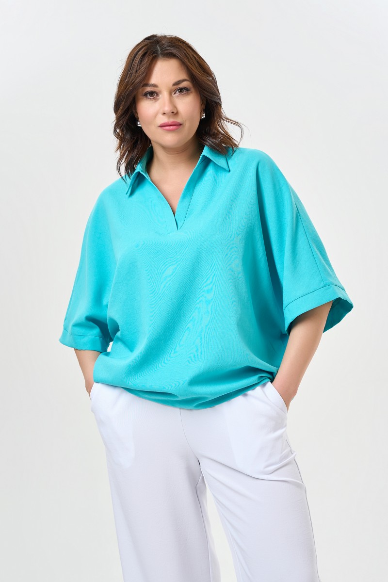 Удобная блузка из льна с воротником поло.
