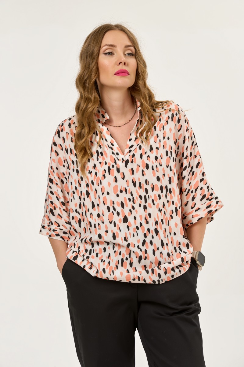 Блузка женская свободного силуэта. Рукава цельнокроенные 3/4 с притачной манжетой.