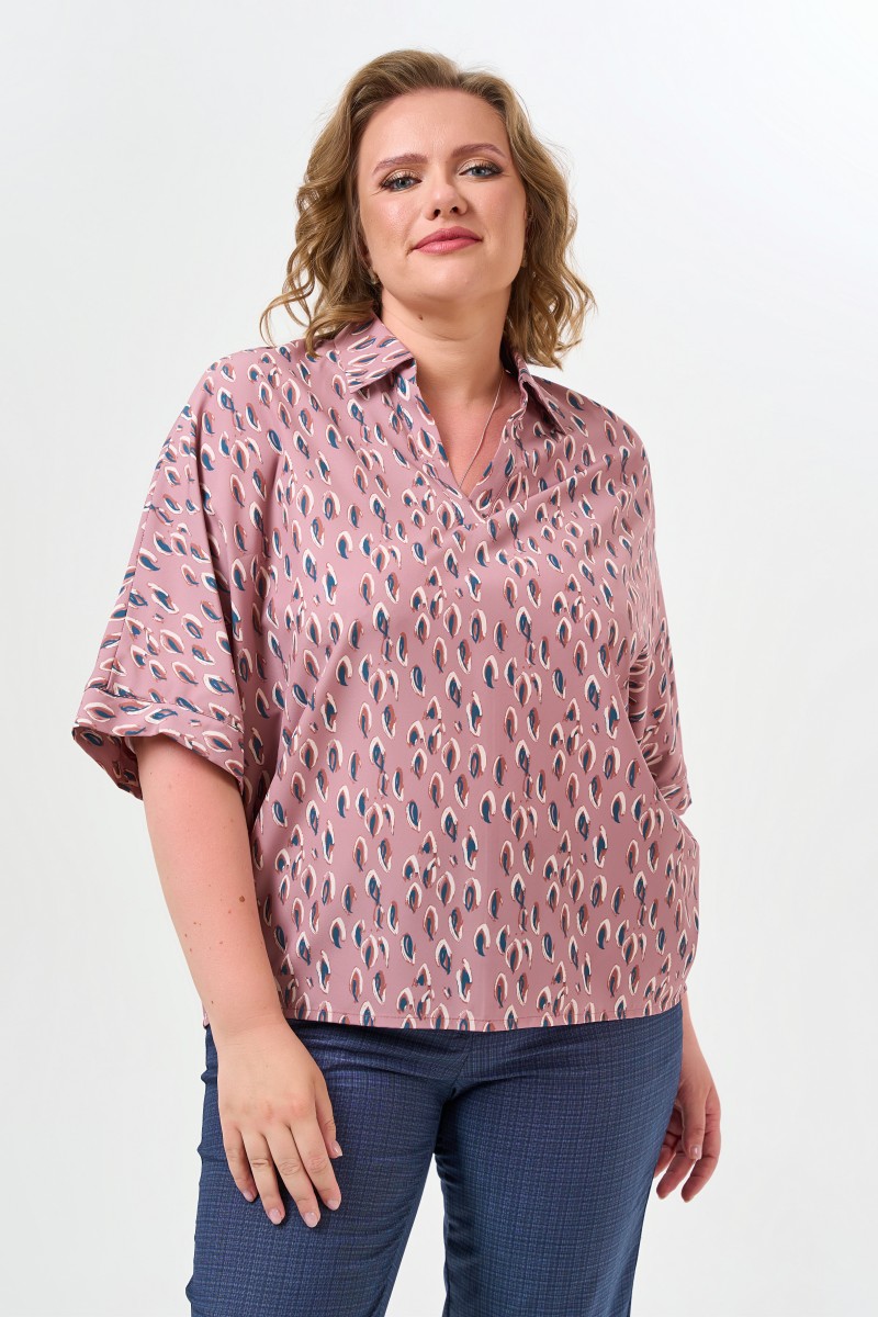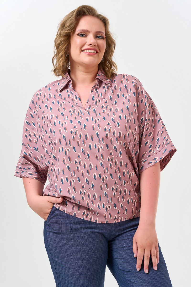 Удобная блузка с интересным принтом “”перо”” и воротником поло.