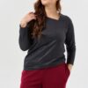 Лонгслив из вискозы с фигурным вырезом горловины.