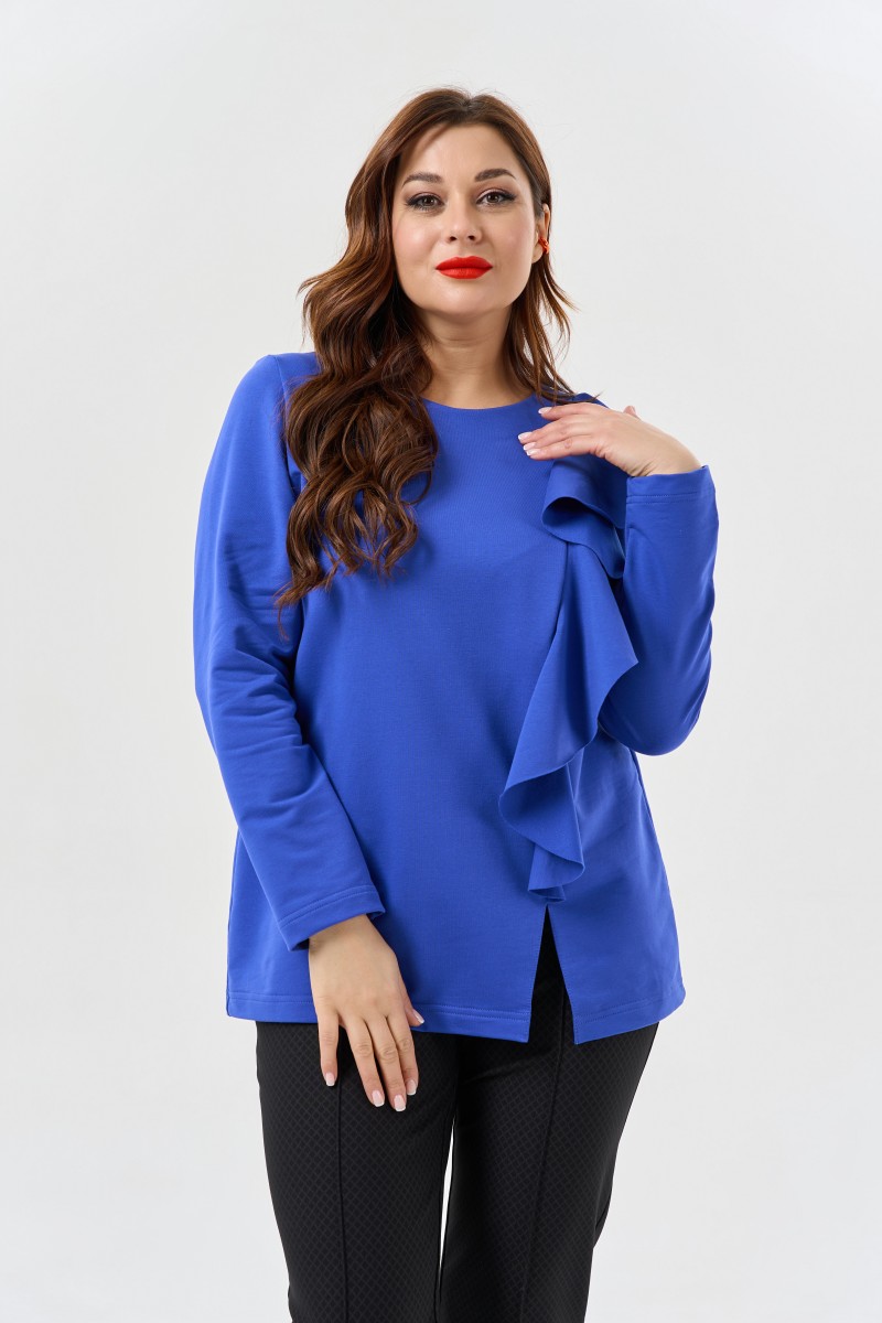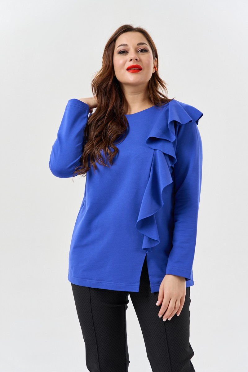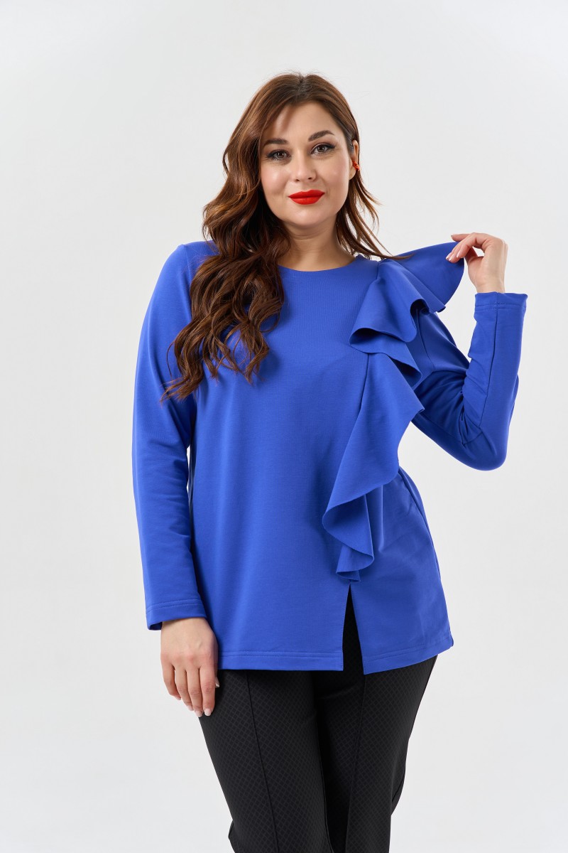 Блузка из трикотажа с вертикальным воланом.