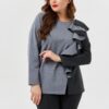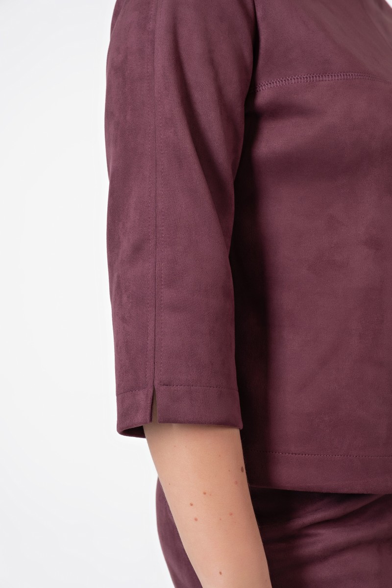 Джемпер женский прямого силуэта длиной до середины бедер. Перед со средним швом и кокеткой швы оформлены отделочной строчкой. Рукав двухшовный с разрезом и отделочной строчкой. Горловина круглая обработана обтачкой.При использовании тканей отличных по св