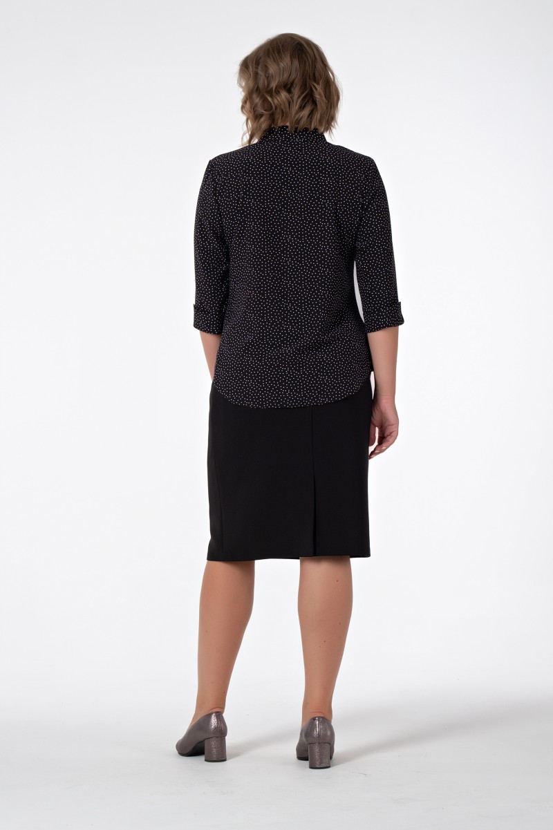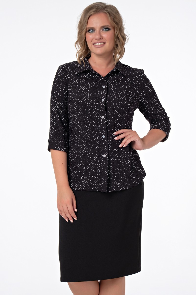 Блузка классического стиля полуприлегающего силуэта с центральной застежкой на 6 пуговиц на планке. Рукава втачные длиной 3/4 с притачными отгибающимися наверх манжетами. Воротник отложной на притачной стойке. Рубашка отлично сочетается с классическими брюками и юбками.
