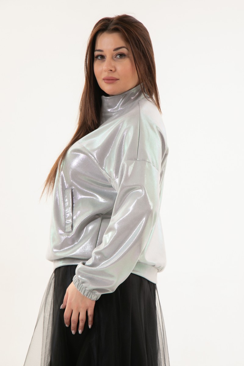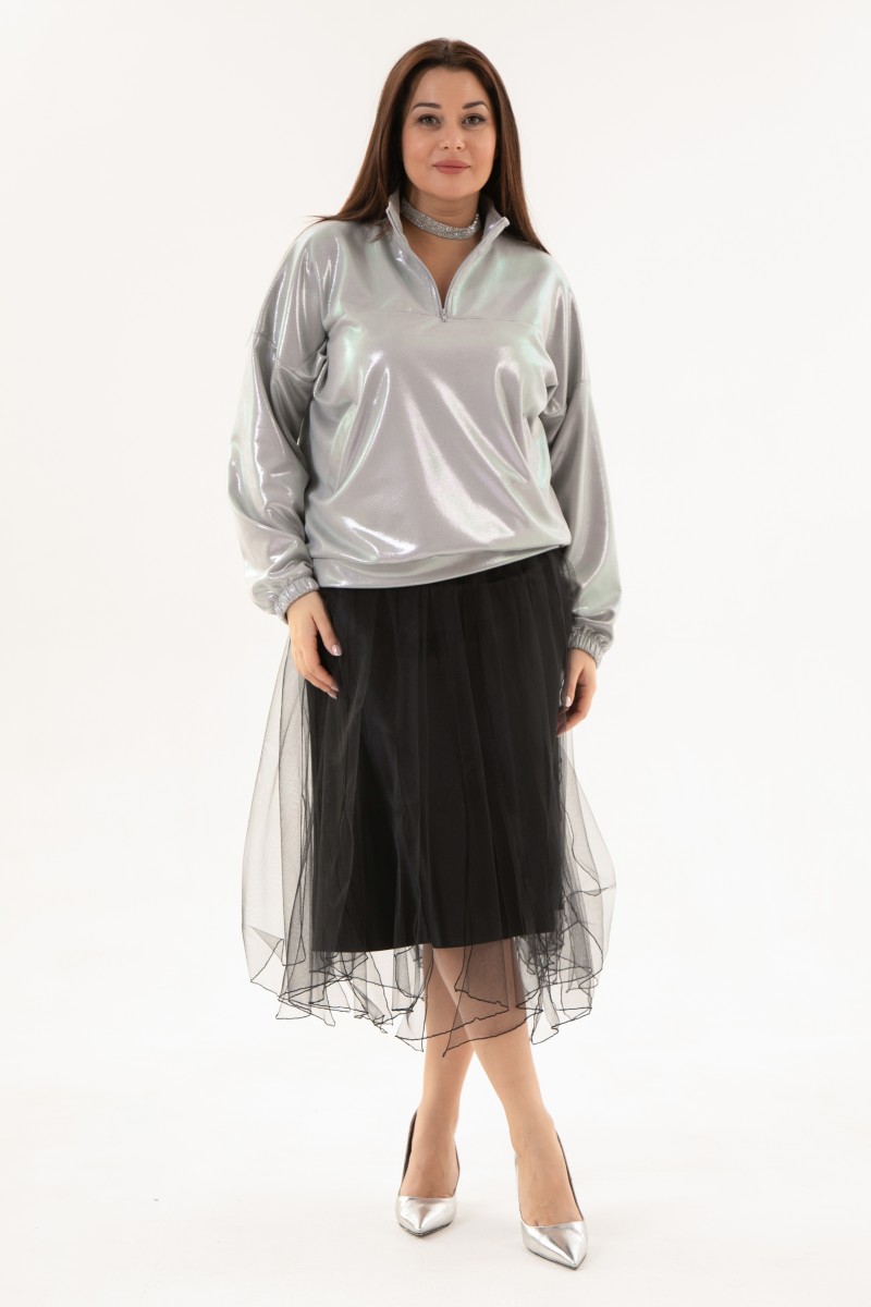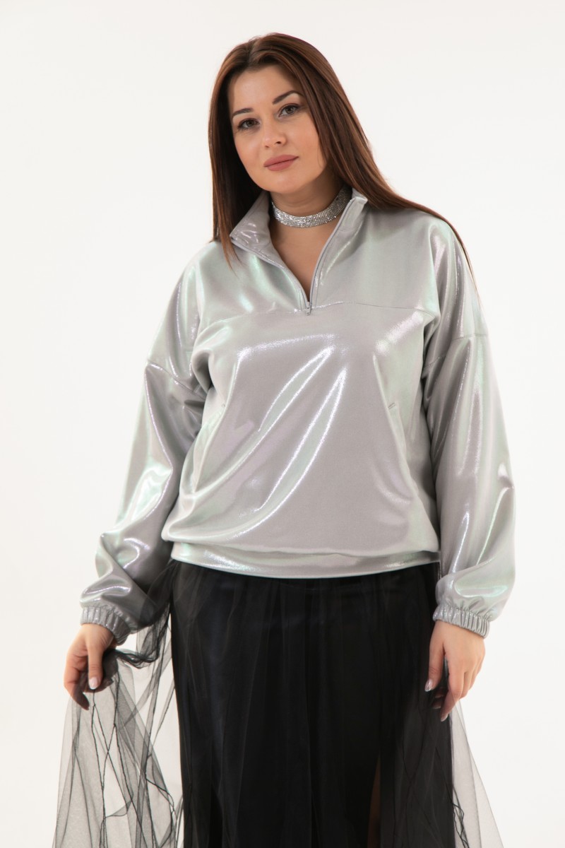 Нарядный свитшот из трикотажа с напылением “”серебро””.