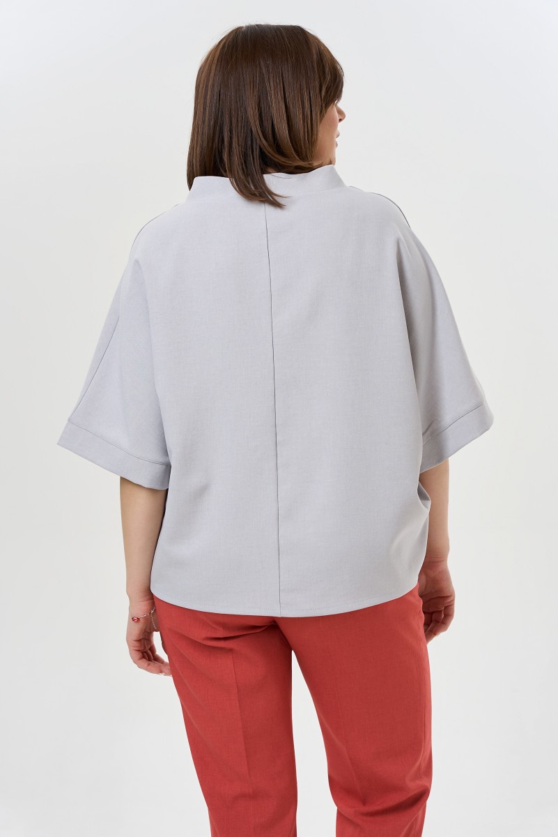 Интересная блузка свободного силуэта с воротником стойка.