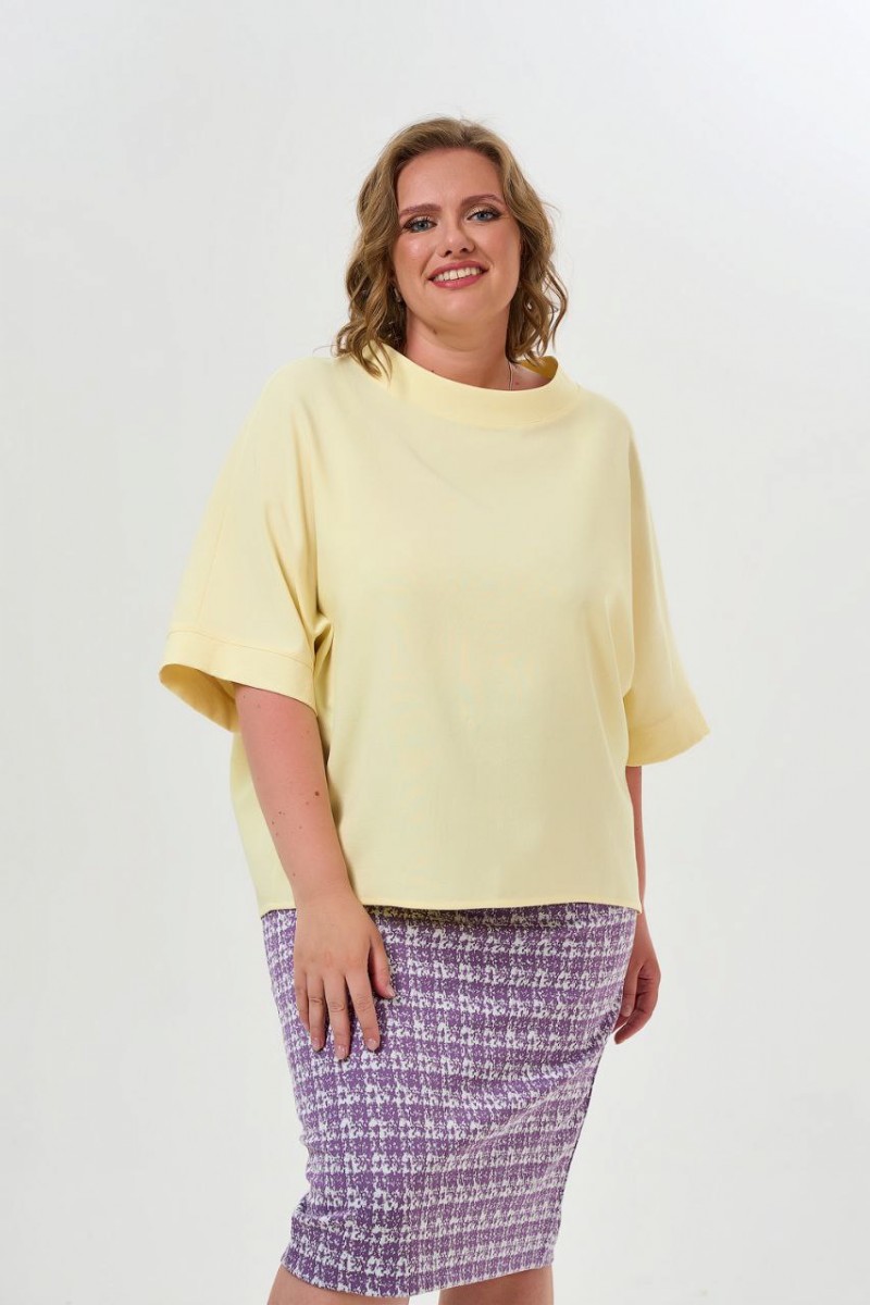 Летняя блузка свободного силуэта в модном оттенке “”сливочное масло””.