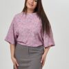 Блузка женская свободного силуэта.Рукава 3/4 цельнокроеные с притачной манжетой. Воротник – стойка. Низ изделия фигурный.