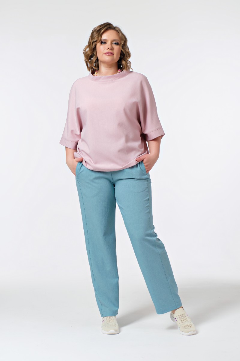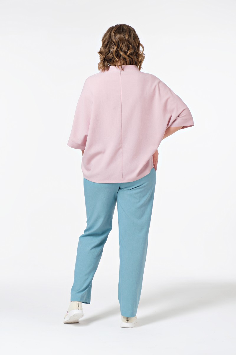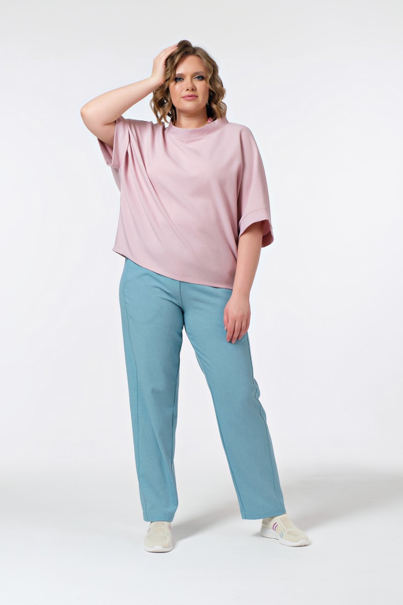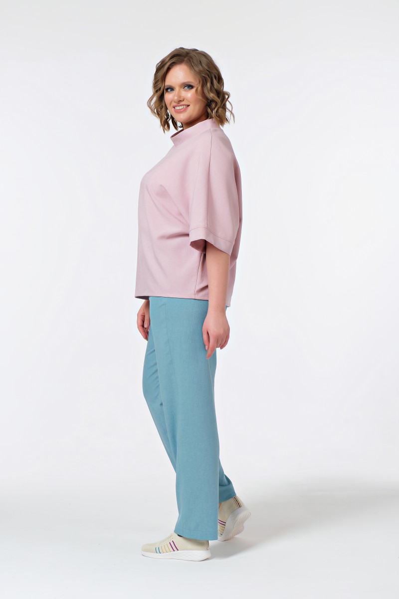 Блузка женская свободного силуэта.Рукава 3/4 цельнокроеные с притачной манжетой. Воротник – стойка. Низ изделия фигурный.