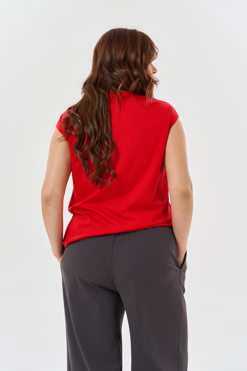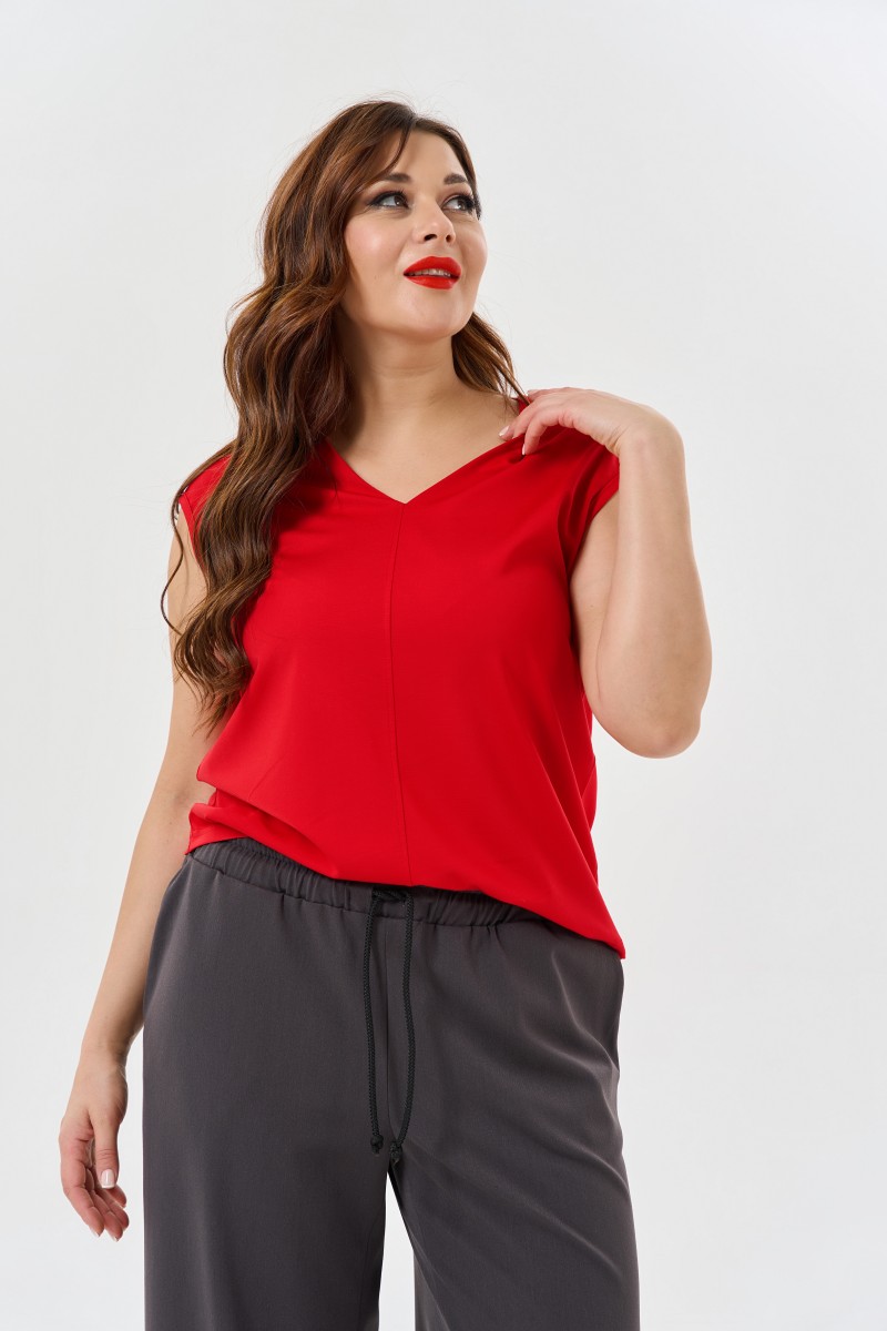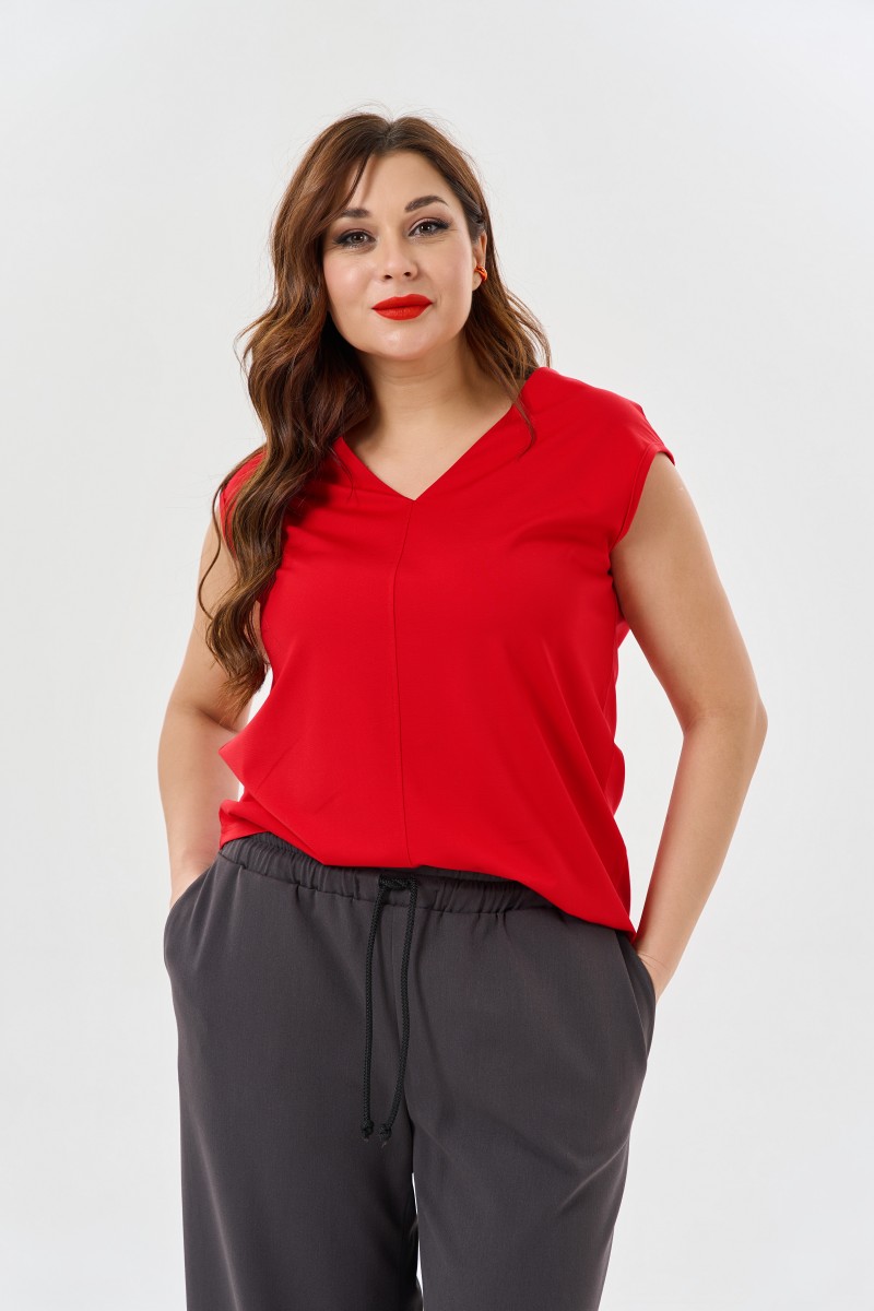 Блузка женская прямого силуэта.Рукав кимано. Горловина с V-образным вырезом. По переду средний шов с отделочной настрочкой.
