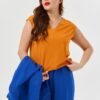 Блузка женская свободного силуэта. Рукава цельнокроенные 3/4 с притачной манжетой.