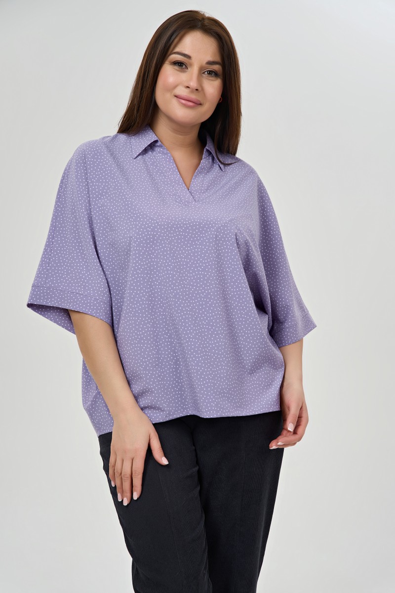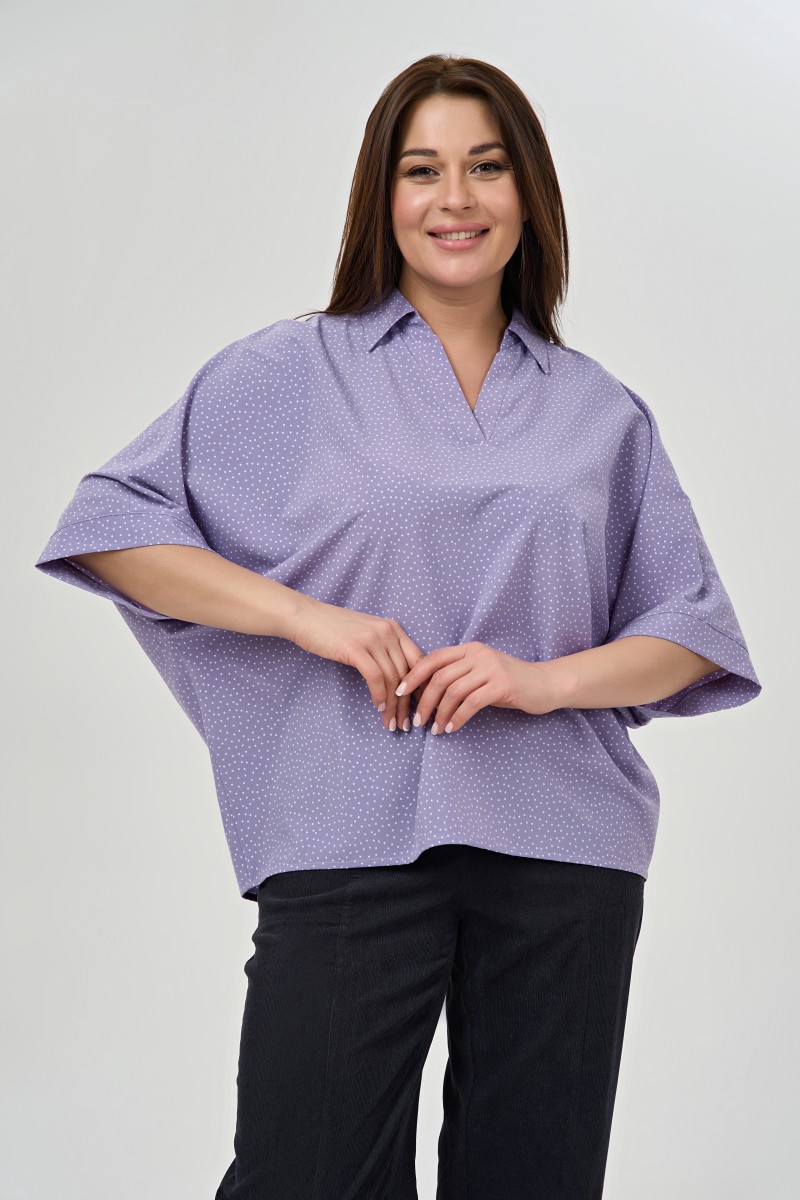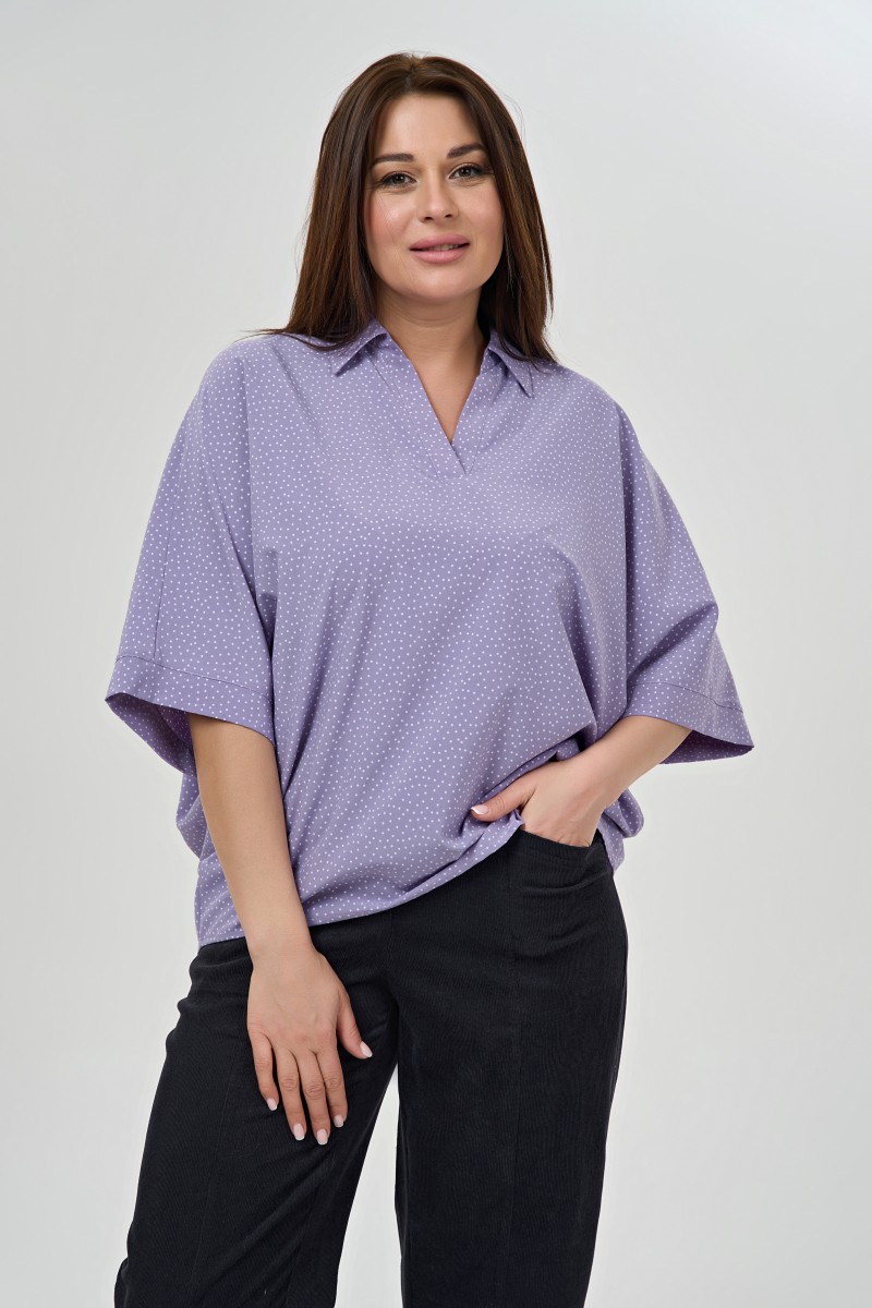 Удобная блузка с принтом “”горох”” воротником поло.