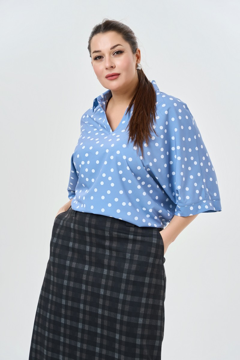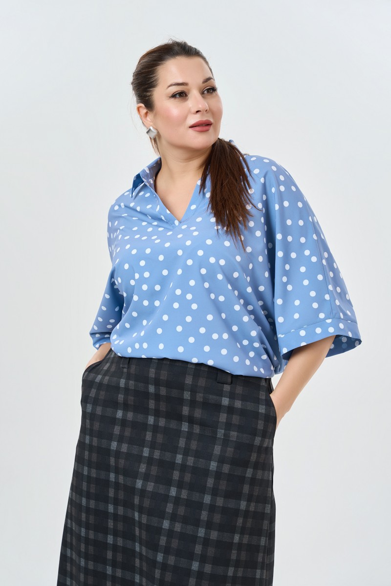 Удобная блузка с принтом “”горох”” и воротником поло.