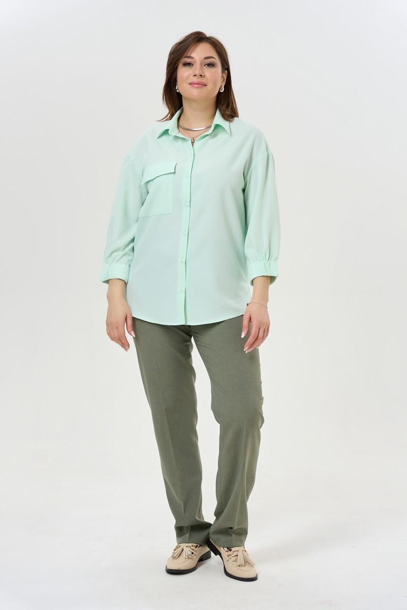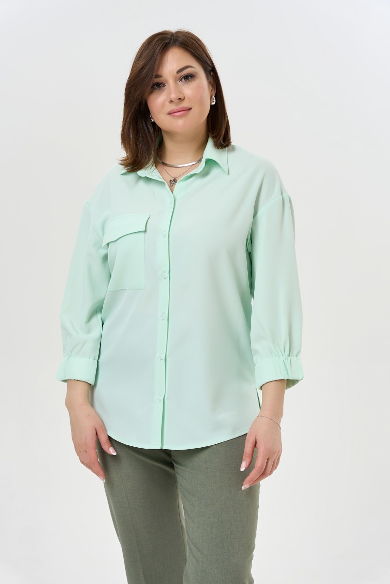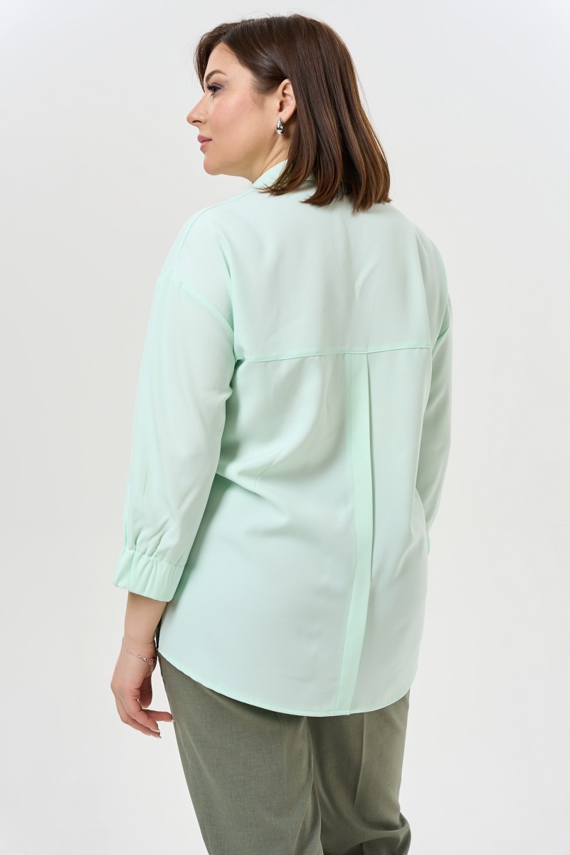 Классическая удлиненная блузка рубашечного кроя с длинными рукавами.