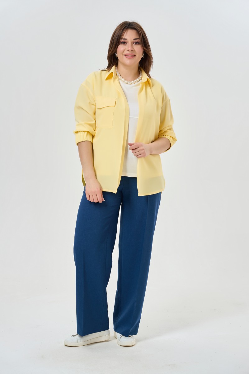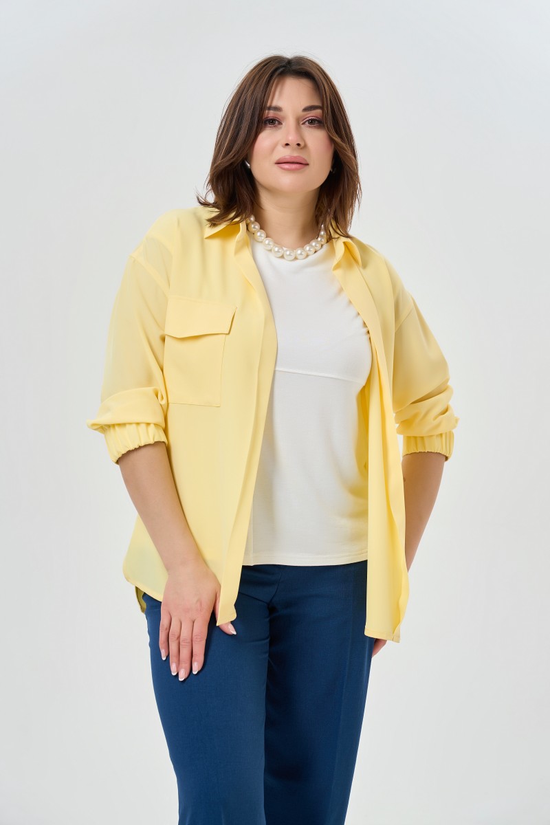 Классическая удлиненная блузка рубашечного кроя с длинными рукавами.