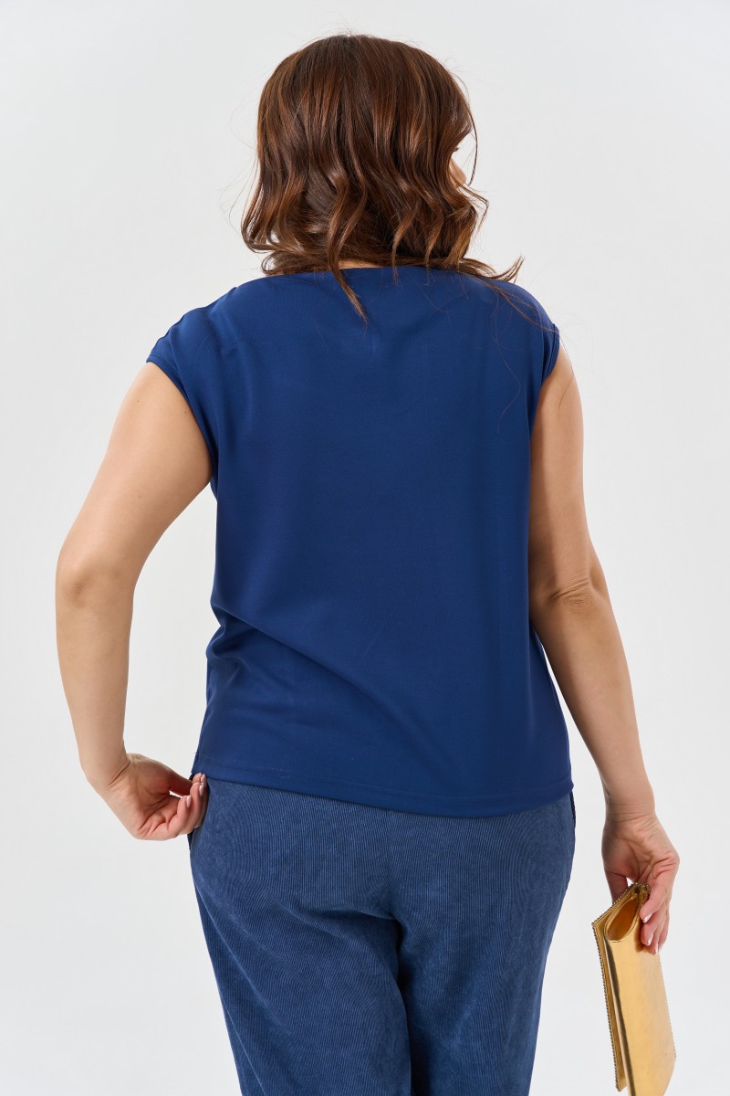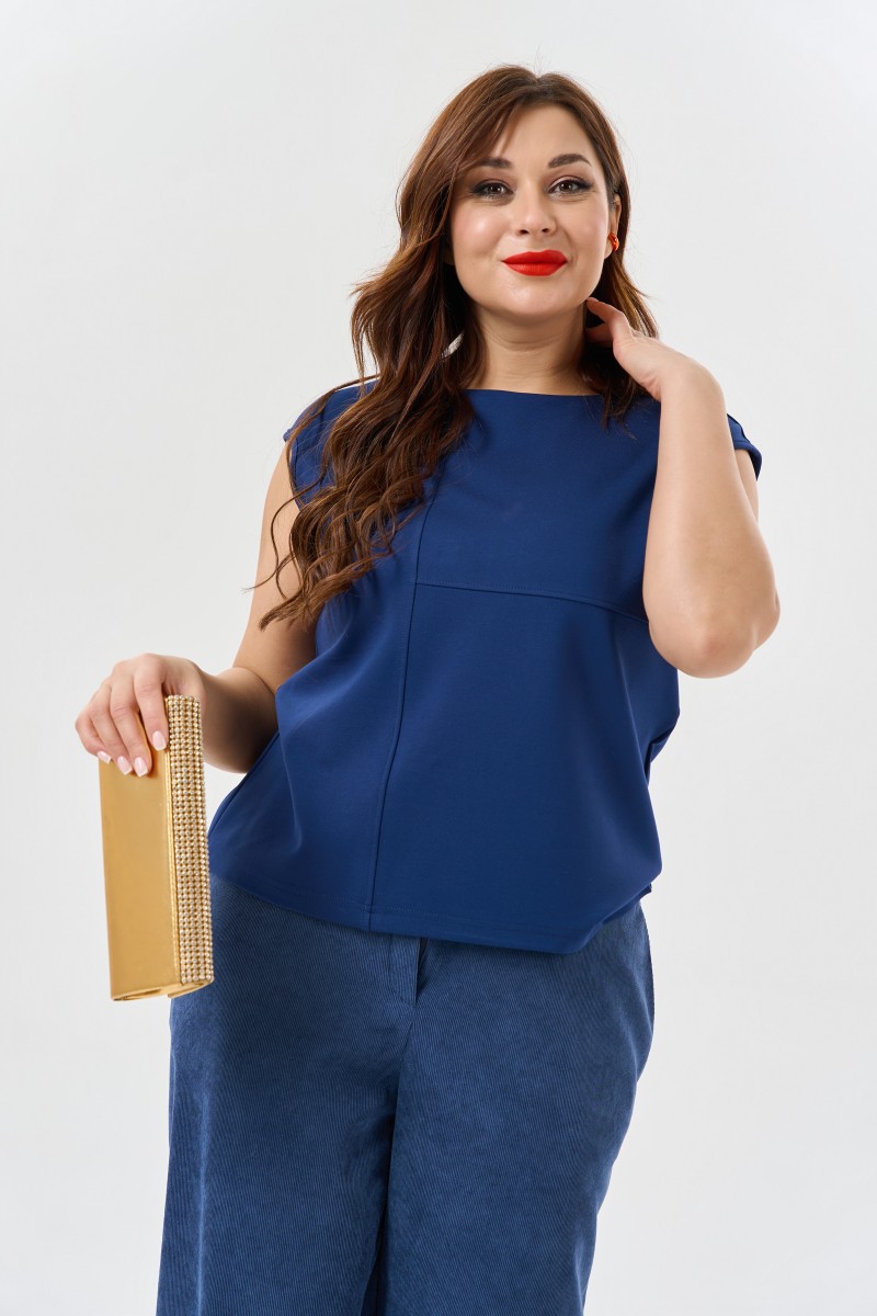 Блузка женская прямого силуэта.Рукав кимано. Вырез горловины в форме “”лодочка”” . По переду удлиняющий силуэт шов с отделочной настрочкой.