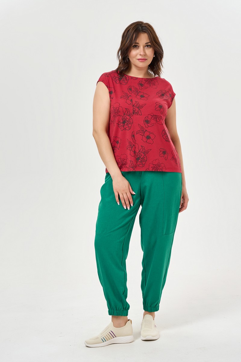Блузка женская прямого силуэта.Рукав кимано. Вырез горловины в форме “”лодочка”” . По переду удлиняющий силуэт шов с отделочной настрочкой.