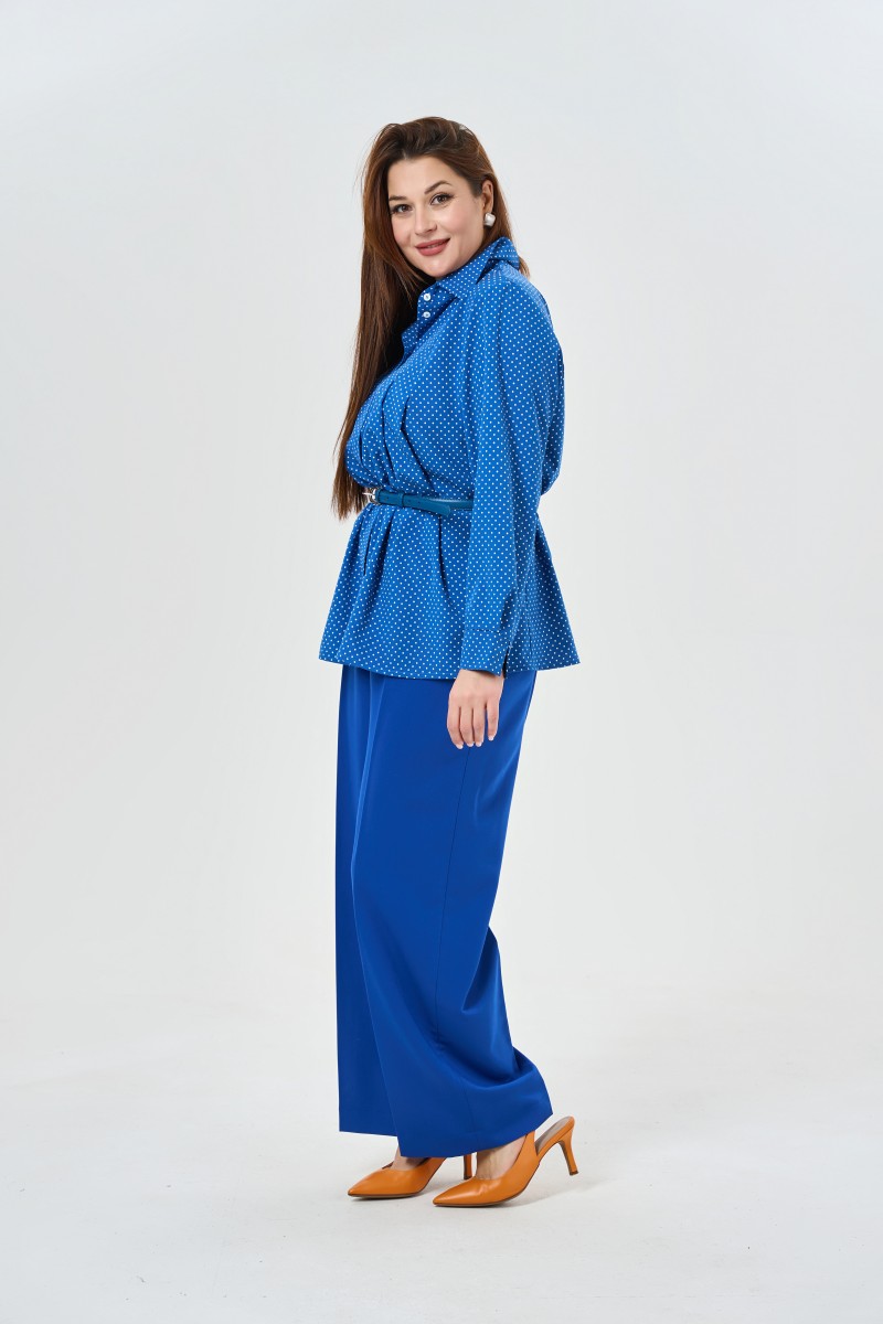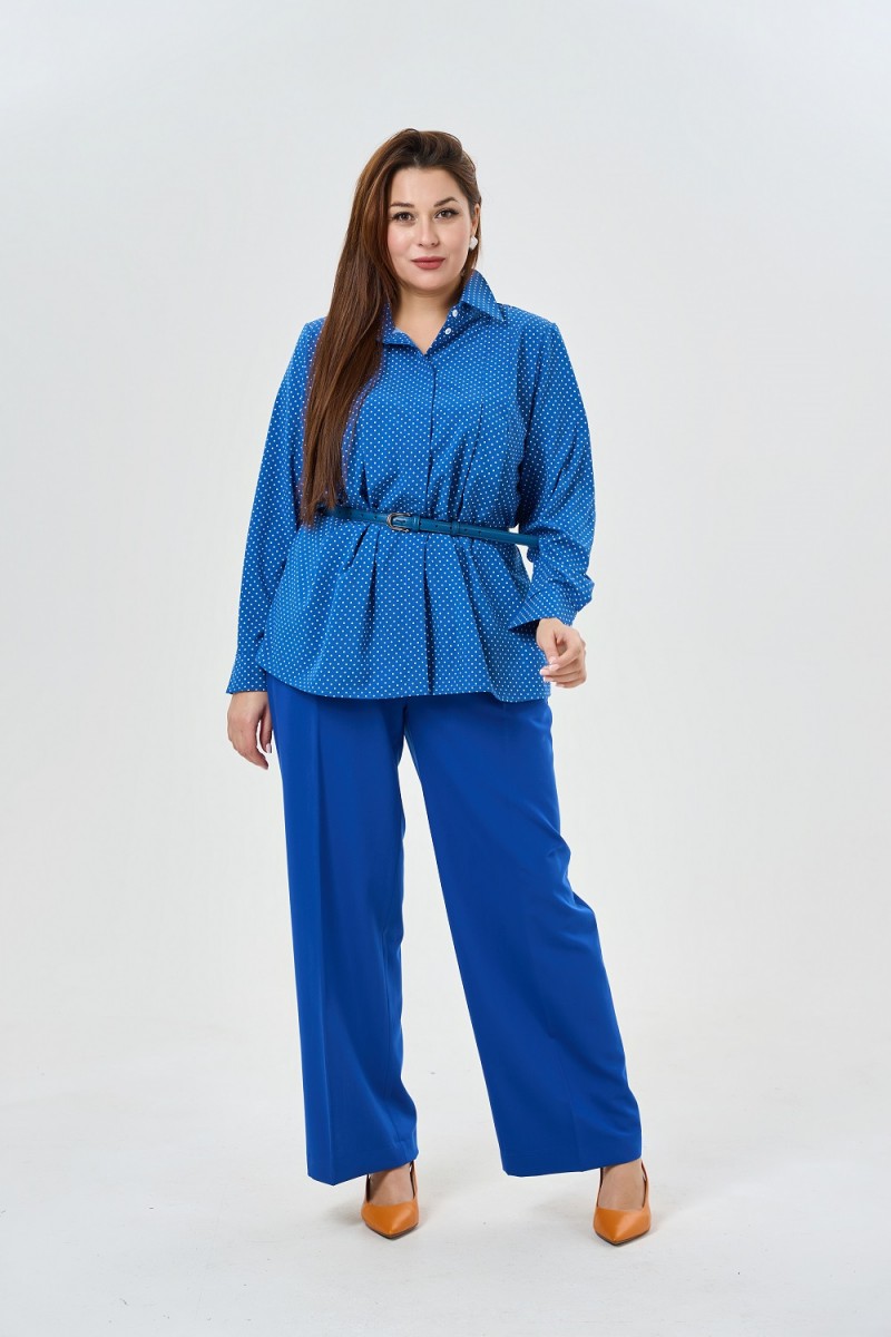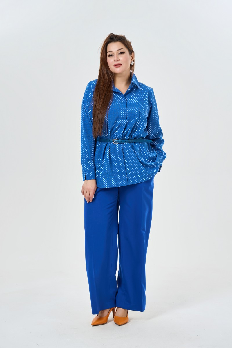 Летящая блузка в трендовом принте “”горох”” с длинным рукавом и классическим воротником.