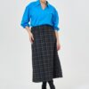 Блузка женская прямого силуэта.Спинка с вытачками по плечевым швам. По переду нагрудные вытачки и по две мягких складки.Воротник отложной на притачной стойке. Рукава втачные длинные с притачными манжетами.