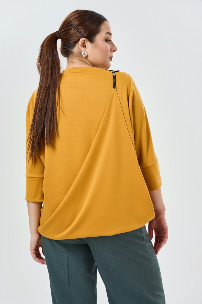 Удлиненная ассиметричная блузка из трикотажного полотна в ярких оттенках.