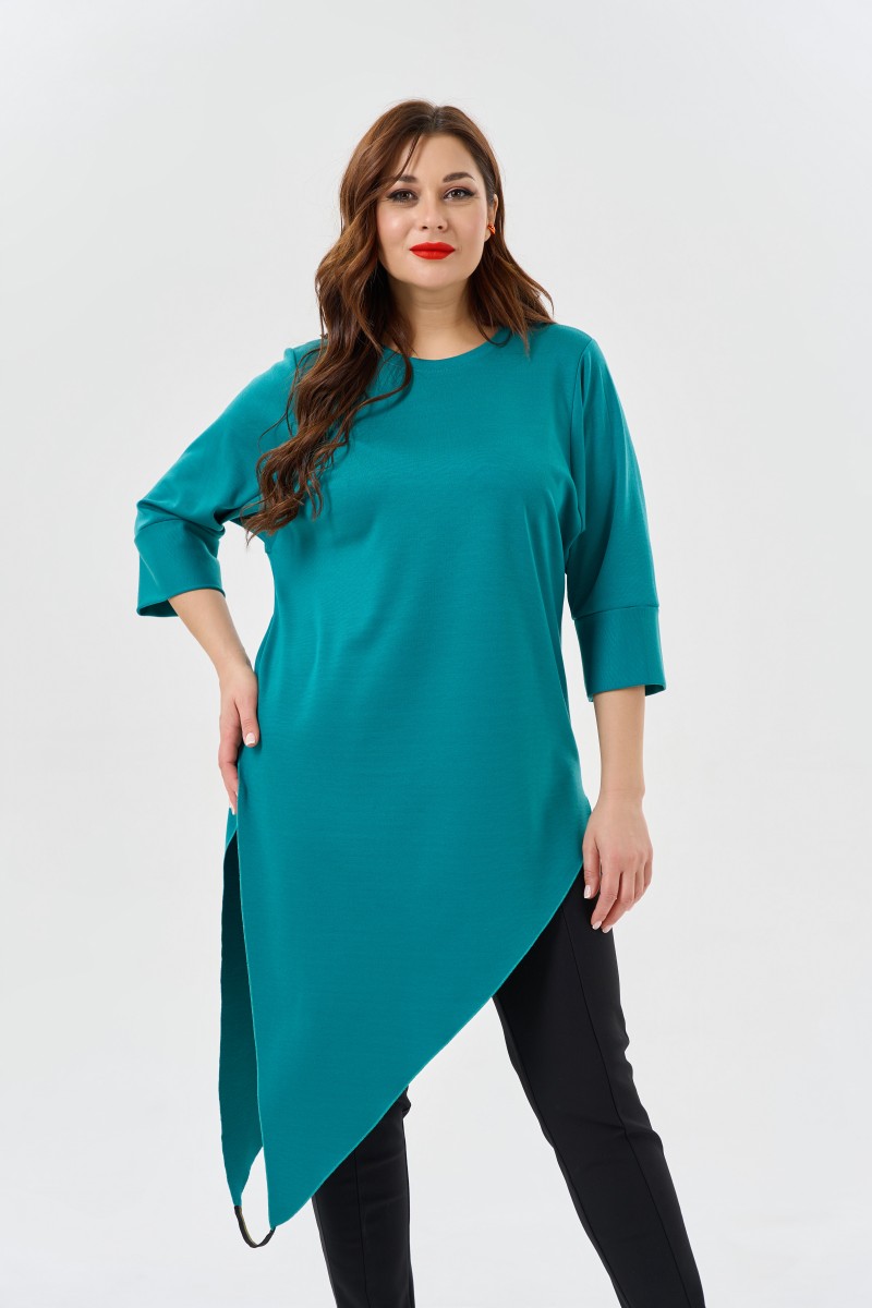 Удлиненная ассиметричная блузка из трикотажного полотна в ярких оттенках.