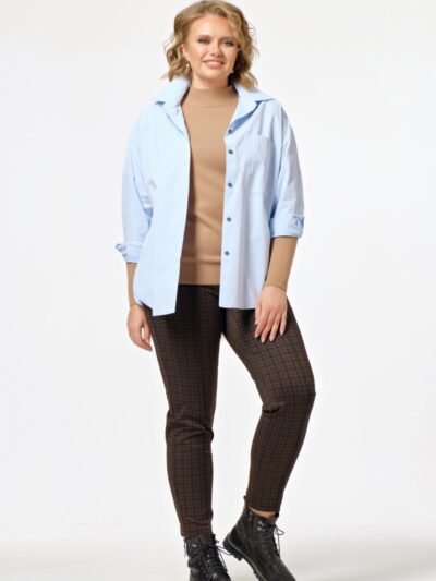 Оверсайз-рубашка носится навыпуск с зауженными брюками или как лёгкое верхнее, создавая расслабленный городской образ. Приталенные модели с планкой и классическим воротником работают в деловом контексте. Укороченные варианты отлично сочетаются с широкими брюками и юбками миди.