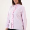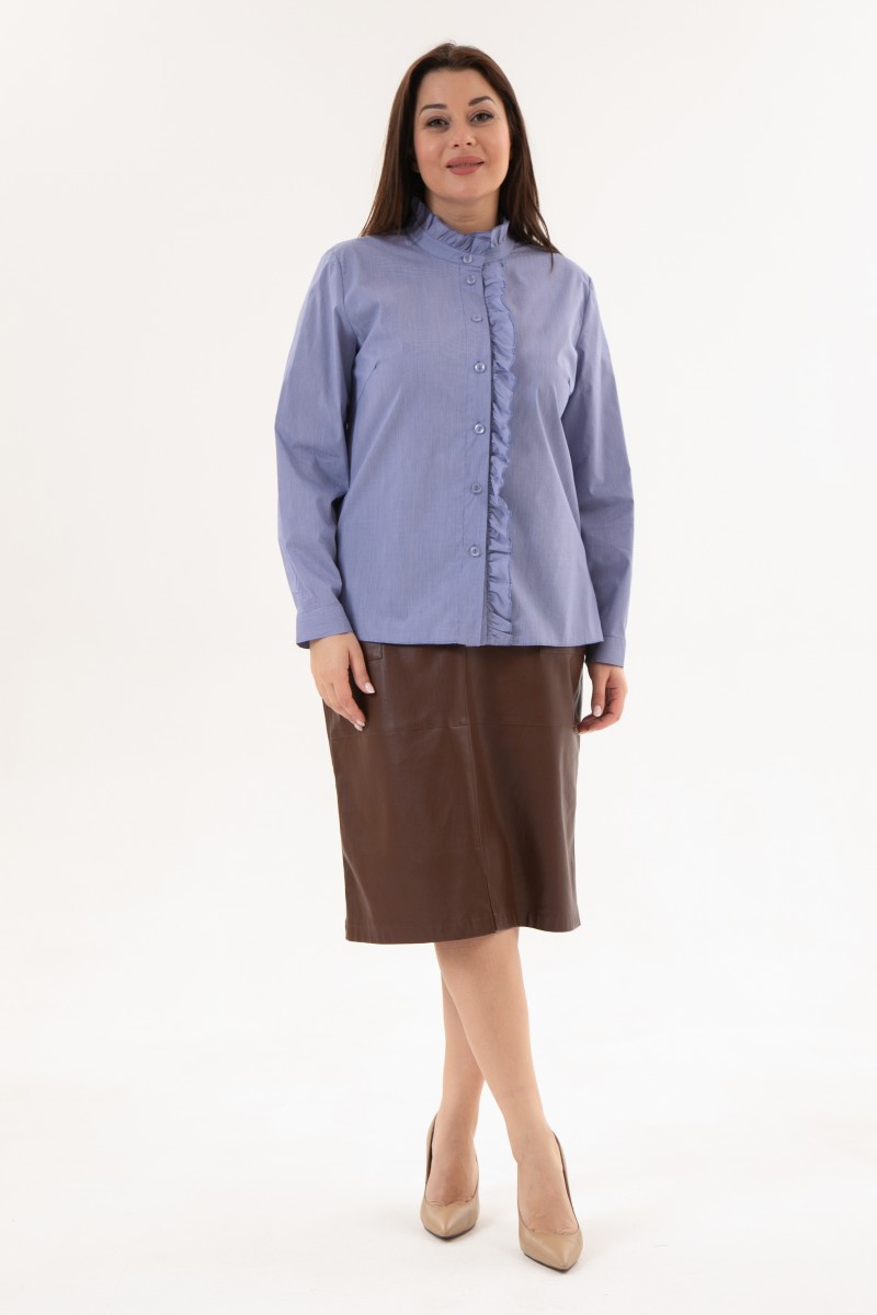 Блузка женская из хлопка с романтичной рюшей вдоль пуговиц.