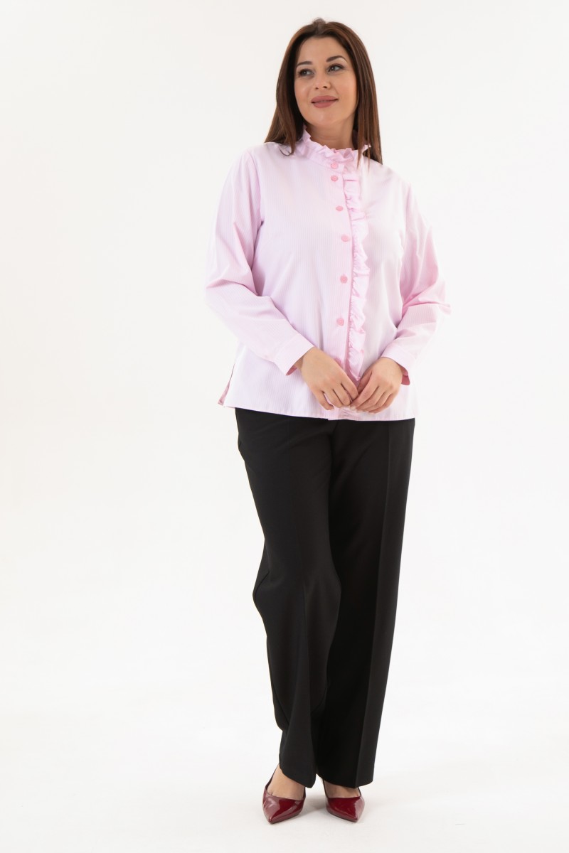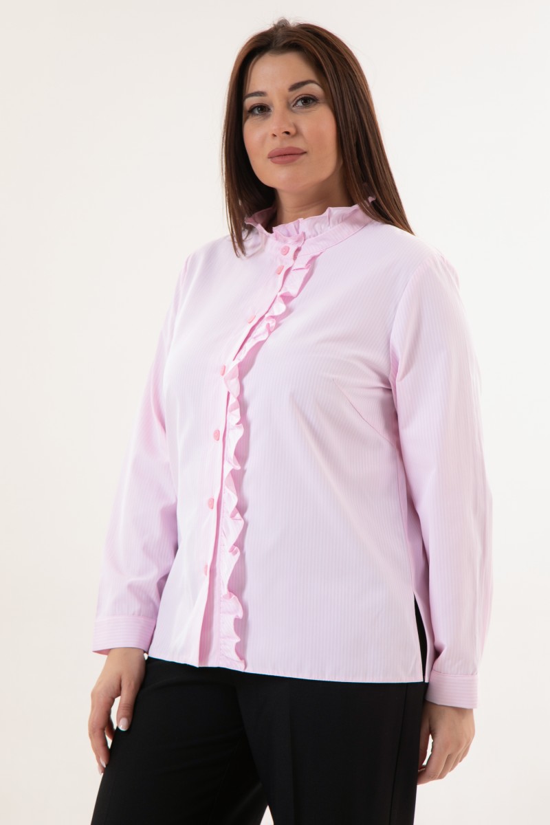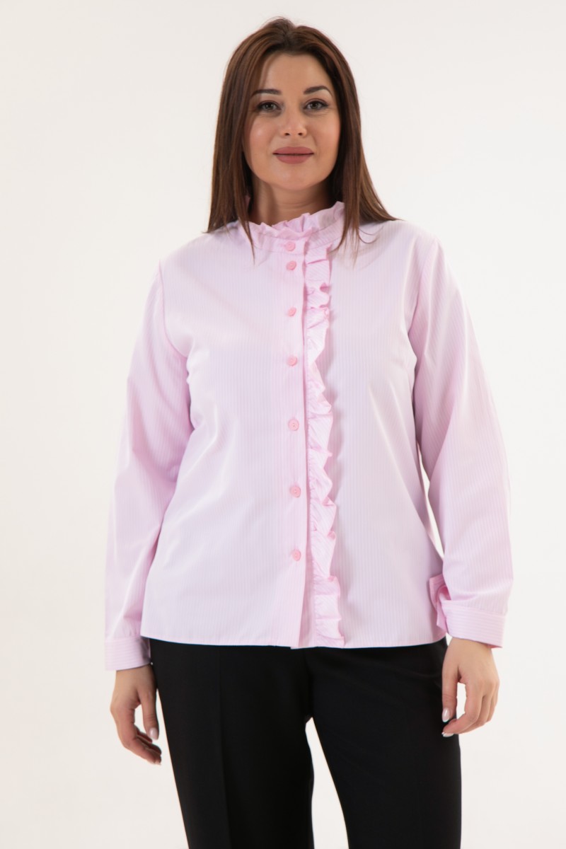 Блузка женская из хлопка с оборкой нежного розового цвета.