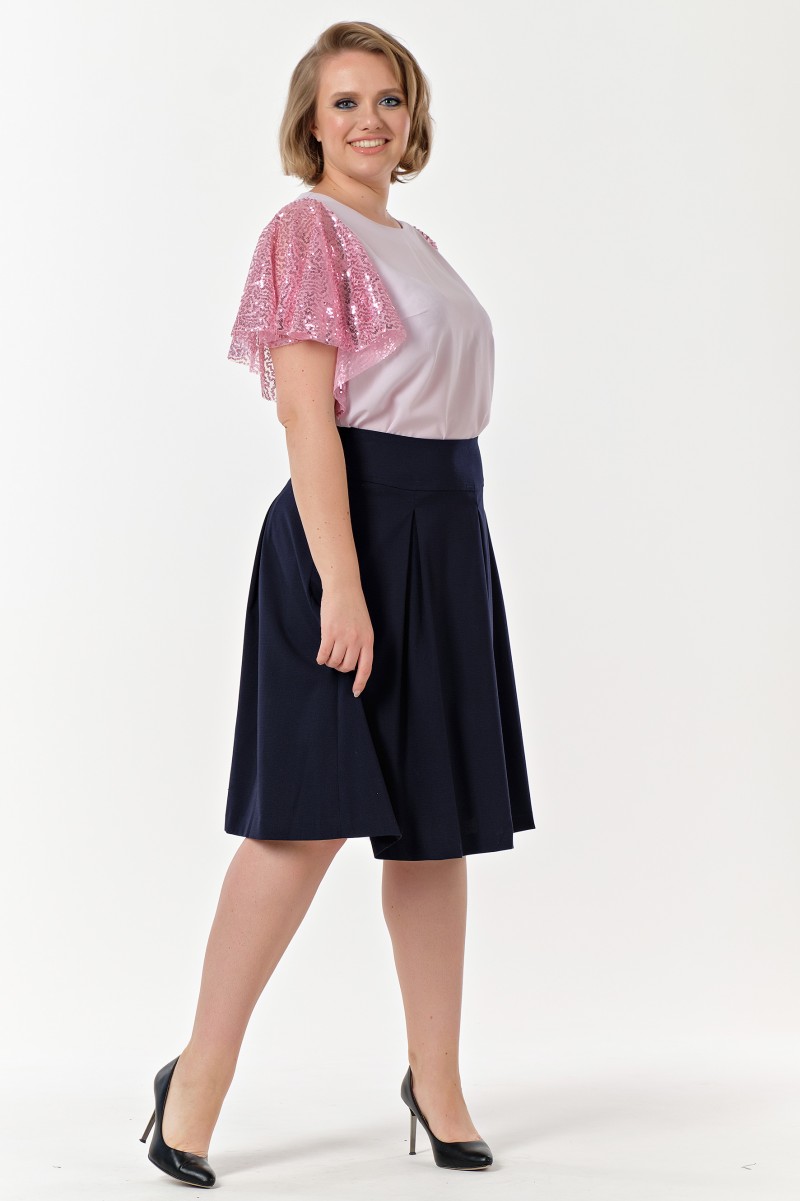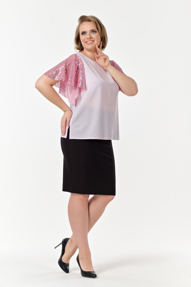 Блузка полуприлегающего силуэта выполненная в романтическом стиле. Рукава «крылья» переходящие в волан втачанный в боковой шов. Перед с нагрудными вытачками спинка со средним швом. Горловина круглая обработанная обтачкой с декоративными завязками на