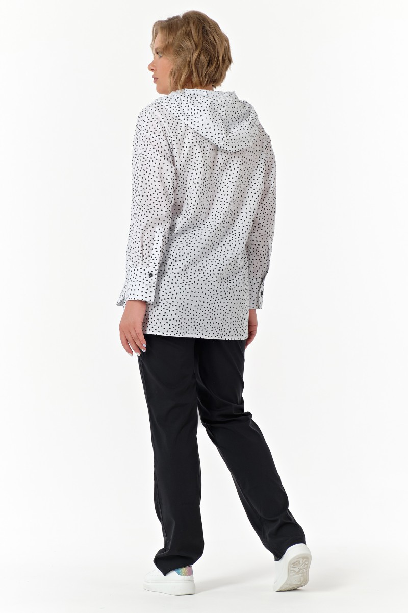 Эта рубашка переосмысливает классические пропорции женской фигуры. Расширенная линия плеч создает эффектный контраст с мягко ниспадающим силуэтом. Свободный крой позволяет коже дышать и дает полную свободу движений. Застежка по центру на шести пуговицах превращает процесс одевания в ритуал – каждая пуговица приближает к завершению образа. Спинка выполнена без швов что создает идеально гладкую линию.Натуральный хлопок в составе ткани обеспечивает комфорт даже в самые жаркие дни. Материал приятен к телу и не сковывает движения.В офисе такая рубашка с брюками-карандашом создаст деловой образ с современным twist. На дружескую встречу ее можно сочетать с джинсами для casual-настроения. А с юбкой она превратится в основу для женственного лука на свидание.Расширенные плечи – это не просто модный прием а способ почувствовать внутреннюю силу и уверенность. В такой рубашке легко завоевывать новые высоты.