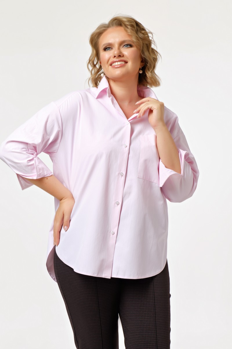 Женская свободная розовая рубашка станет основой для множества образов. Длинные рукава подчеркивают элегантность силуэта создавая баланс между деловым стилем и casual-комфортом. Накладной карман слева добавляет практичности и визуального интереса. Застежка на семь пуговиц по центру позволяет варьировать глубину выреза в зависимости от настроения и случая.Особенность модели – асимметричный низ с удлиненной спинкой который создает современную динамику и позволяет носить рубашку как заправленной так и навыпуск. Мягкий хлопок обеспечивает воздухопроницаемость и приятные тактильные ощущения.Сочетается с брюками-карандашом для деловых встреч создавая образ уверенной в себе женщины. С джинсами превращается в идеальный выбор для дружеских встреч и прогулок по городу. Юбка-карандаш или плиссированная юбка добавят женственности для свидания или вечеринки. Универсальность этой модели позволяет легко переходить от офисных задач к личным планам просто меняя аксессуары и низ.