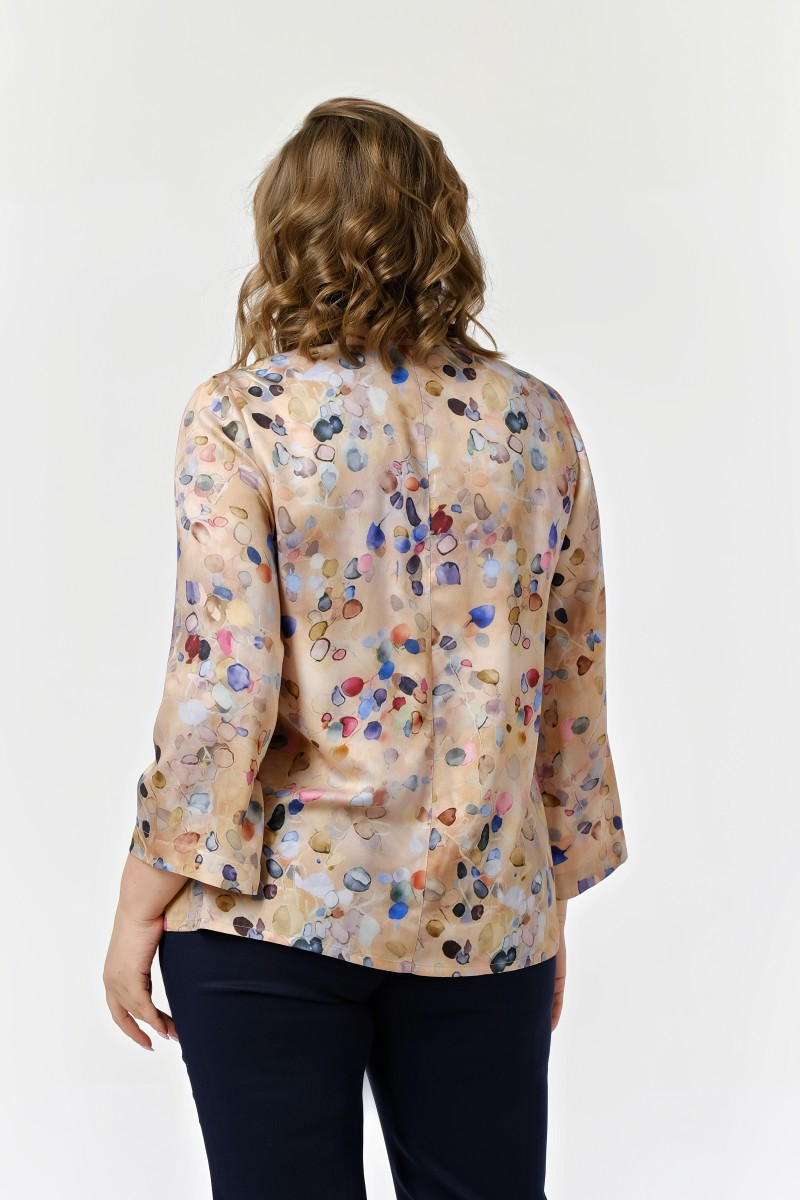 Эта блузка станет основой для множества стильных комбинаций благодаря своему продуманному крою. Расклешенный силуэт мягко скрывает особенности фигуры создавая элегантную линию от плеч к бедрам. V-образный вырез открывает зону декольте визуально вытягивает силуэт и подходит для любого типа фигуры.Мягкие складки на груди создают красивую драпировку которая добавляет женственности даже самому строгому образу. Деликатные вытачки формируют аккуратную посадку по фигуре без лишнего облегания.Легкая ткань с цветочным принтом делает блузку универсальной для разных occasions. В паре с прямыми брюками высокой посадки получается элегантный офисный look. С зауженными джинсами блузка создает непринужденный casual образ для прогулок и встреч с друзьями.Свободный крой обеспечивает комфорт в движении а изящный силуэт подходит для деловых встреч и вечерних выходов. Блузка легко сочетается с жакетами кардиганами и аксессуарами позволяя создавать образы на любой случай жизни.