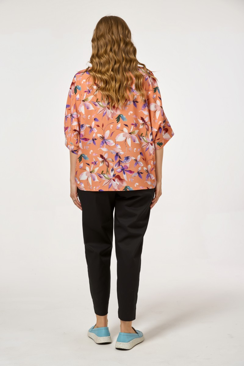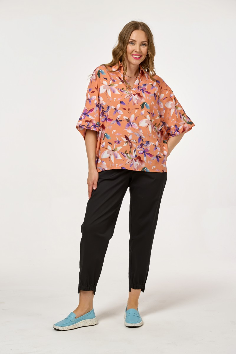 Эта блузка дарит то самое ощущение легкости когда хочется двигаться без ограничений. Свободный крой и рукава до локтя создают непринужденный образ для прогулок по городу или встреч в любимом кафе.