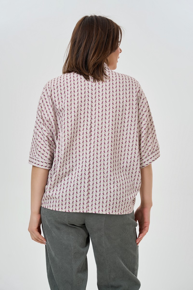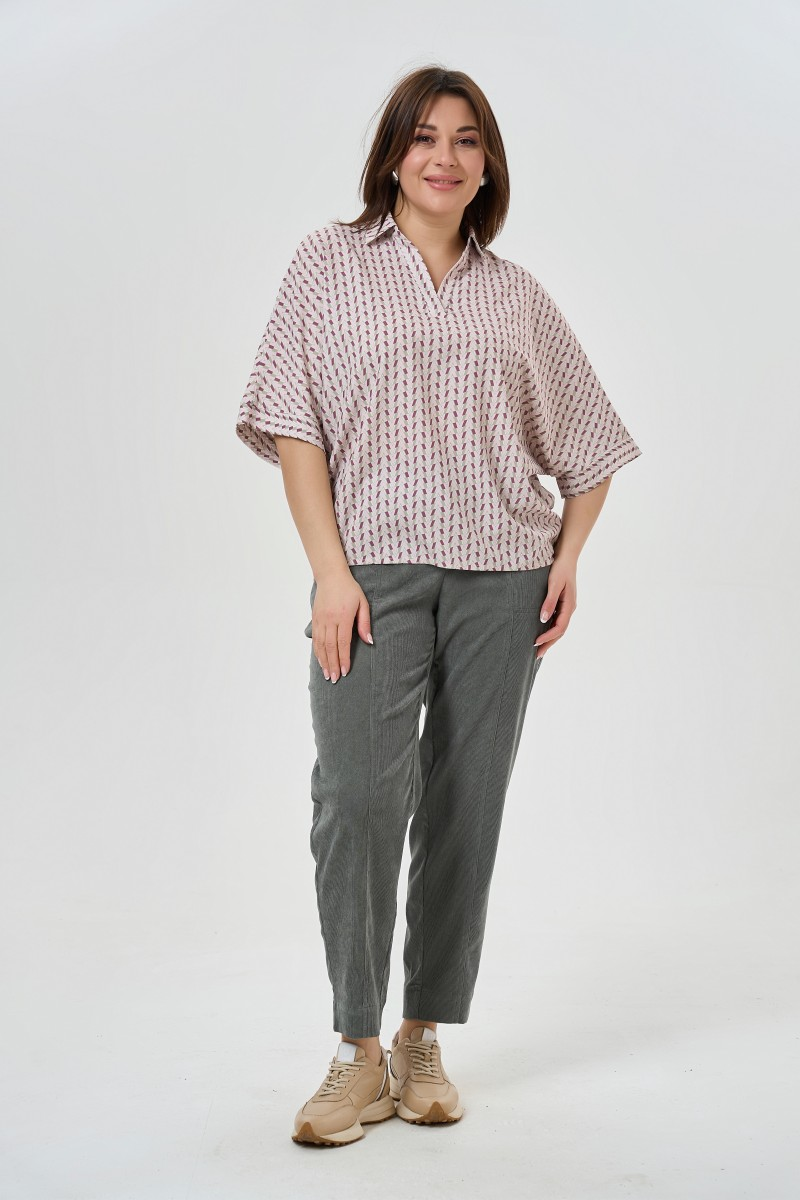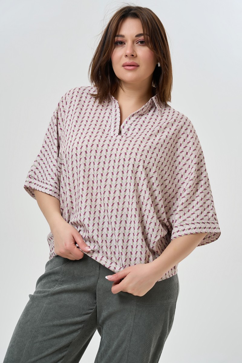 Свободный силуэт этой блузки создает ощущение воздушности и непринужденности. Рукава длиной три четверти с аккуратными манжетами выглядят элегантно и практично одновременно. Такая длина рукава универсальна – не сковывает движения и подходит для любого сезона.Прямой крой позволяет носить блузку как заправленной в брюки так и навыпуск. С деловыми прямыми брюками для офиса получается стильный рабочий образ. Свободные брюки-бананы превращают комплект в идеальный наряд для прогулок по городу. Зауженные брюки добавят образу изысканности для вечернего выхода.Качественная ткань приятна к телу и не стесняет движений. Casual-стиль блузки делает ее отличным выбором для путешествий встреч с друзьями или shopping-дней. Нейтральная цветовая гамма легко сочетается с любыми оттенками в гардеробе.Блузка одинаково уместна на деловой встрече и на прогулке. Достаточно сменить аксессуары – и образ заиграет по-новому. Практичное решение для современного ритма жизни.