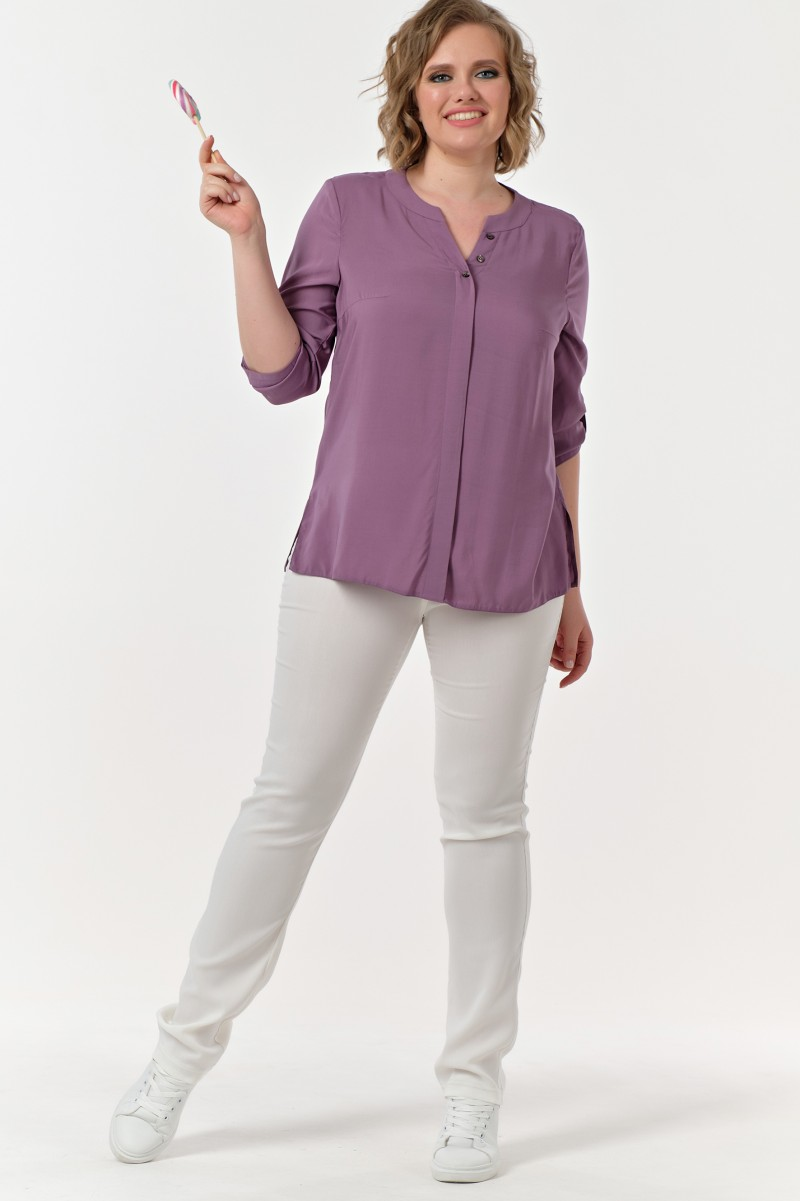 Лаконичная блузка в благородном фиолетовом оттенке станет основой для множества образов. Прямой силуэт создает комфорт в движении а рукав три четверти добавляет элегантности любому луку.