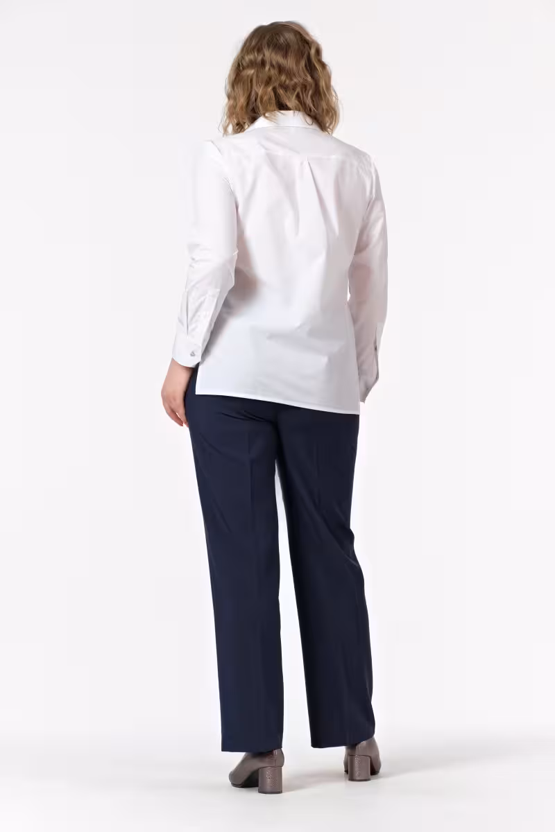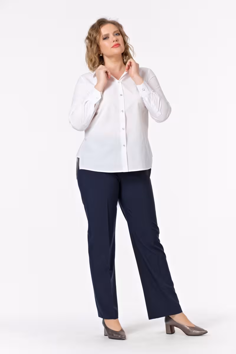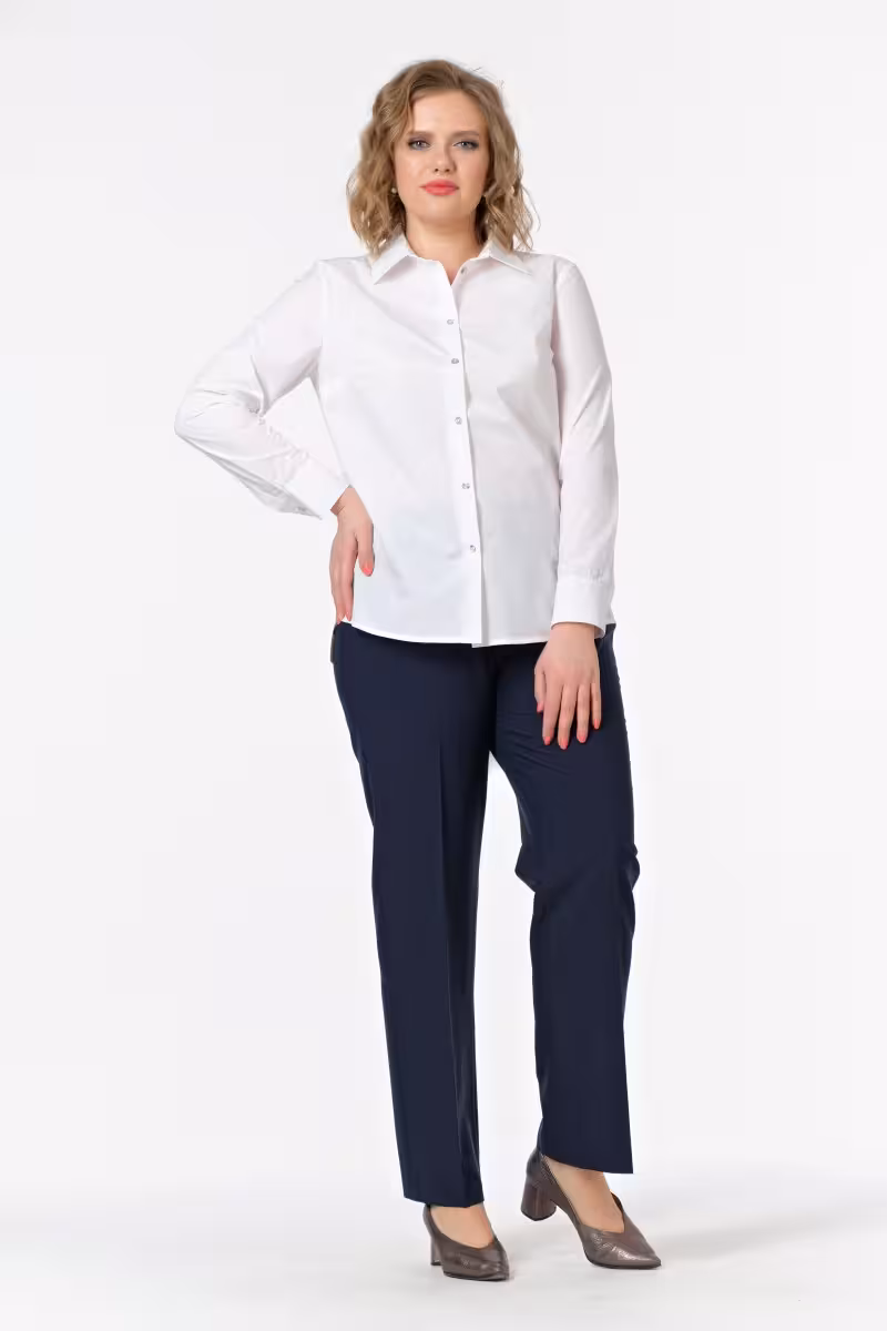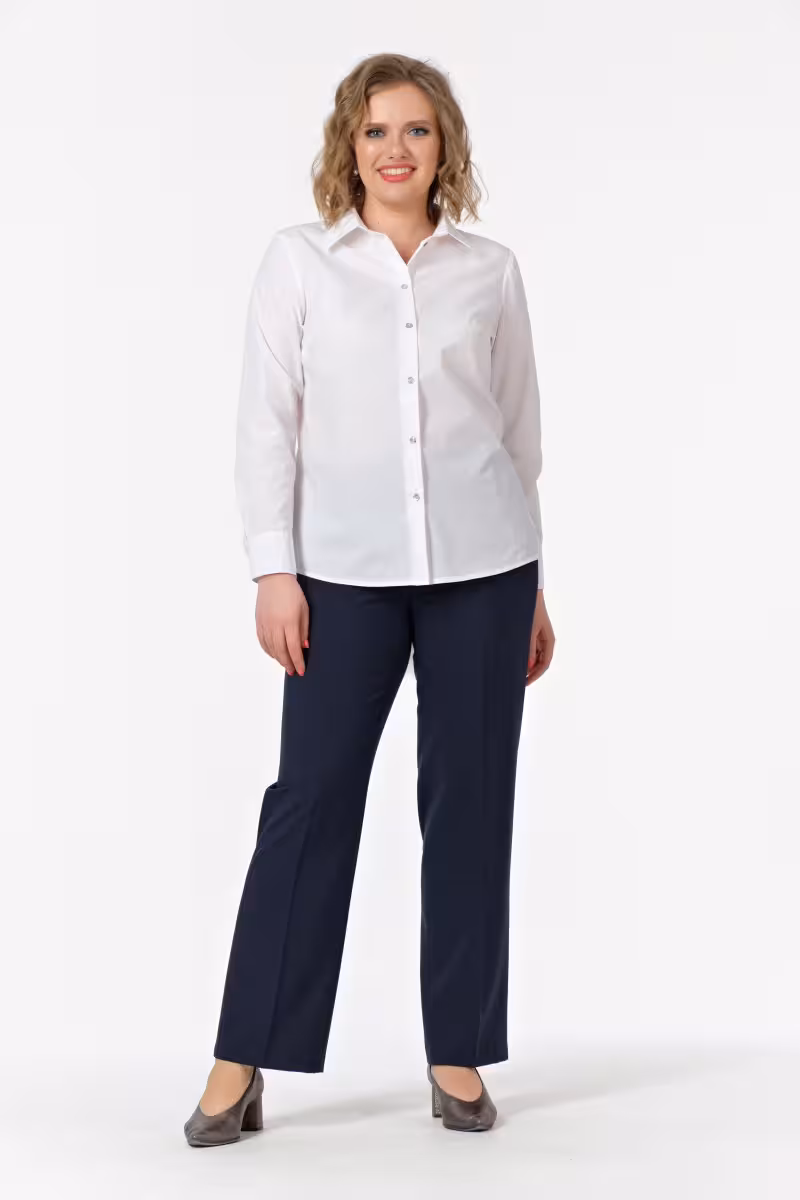 Белая блузка классического кроя воплощает философию современной деловой женщины. Прямой силуэт создает элегантную линию не сковывая движений. Длинные рукава с аккуратными застежками на запястьях добавляют образу строгости и респектабельности.Центральная планка с семью пуговицами позволяет варьировать степень открытости выреза в зависимости от случая. Для деловой встречи можно застегнуть блузку до самого верха а для дружеской беседы за чашкой кофе – оставить верхние пуговицы расстегнутыми.Спинка дополнена изящной складкой которая обеспечивает комфортную посадку и свободу движений. Качественная хлопковая ткань приятна к телу и сохраняет форму после стирки.Эта блузка прекрасно сочетается с брюками-карандашом для строгого офисного лука с классической юбкой для элегантного женственного образа или с темными джинсами для стильного повседневного стиля. Универсальность модели делает ее основой капсульного гардероба. Подходит для офиса деловых встреч и официальных мероприятий.