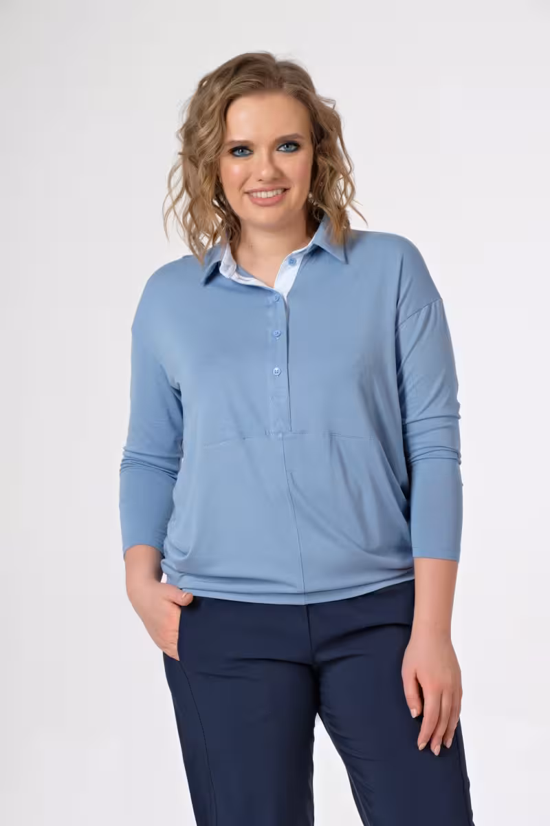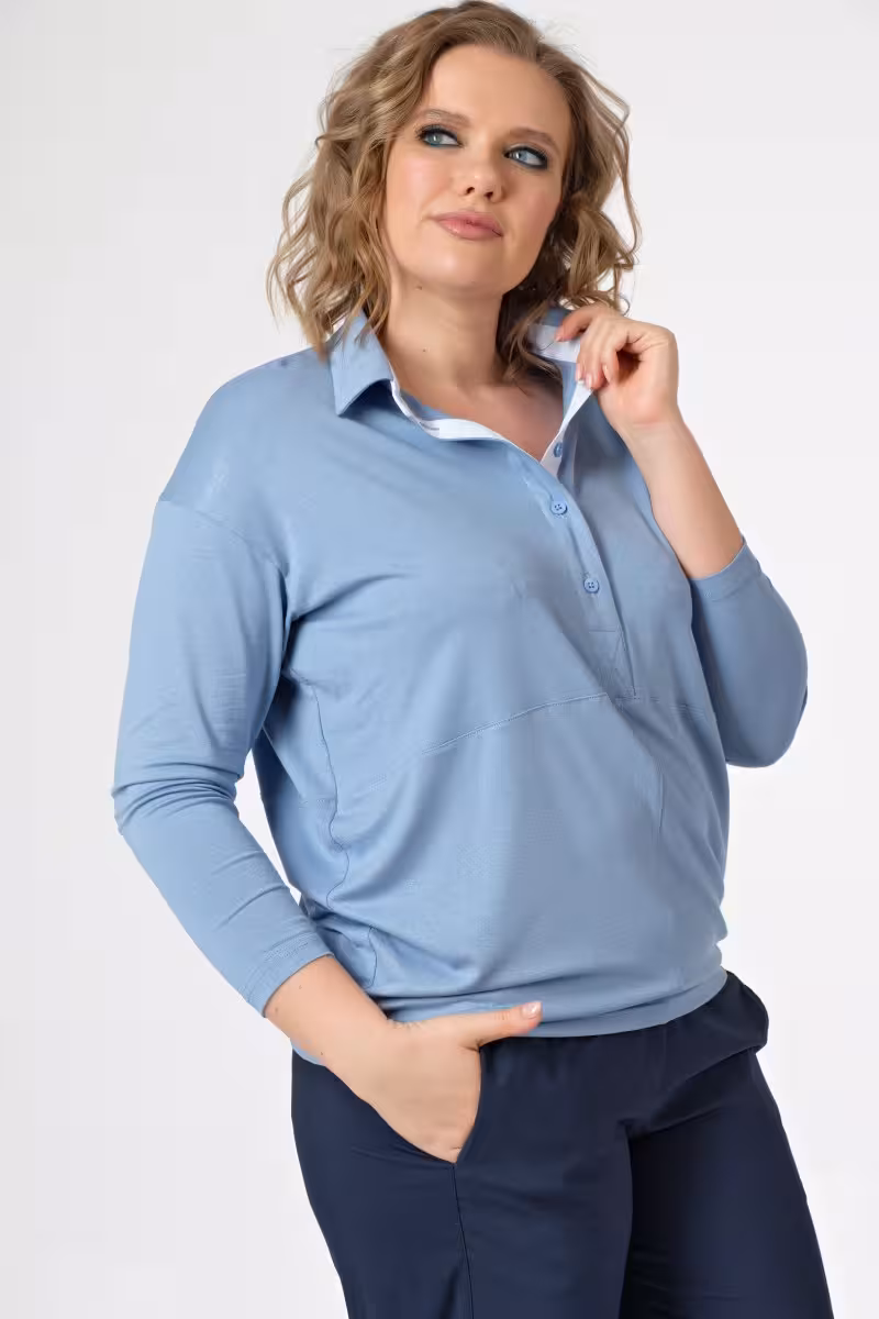 Когда границы между спортом и стилем стираются рождаются такие вещи. Эта блузка объединяет комфорт спортивной одежды с элегантностью классической рубашки. Объемный силуэт создает расслабленный настрой – никаких ограничений в движениях только свобода.Особенная конструкция делает силуэт интересным: верх свободный а к низу форма слегка сужается. Это придает фигуре динамичность и не дает образу выглядеть бесформенным. Длинный рукав со спущенной линией плеча усиливает ощущение непринужденности.Отложной воротник на стойке напоминает о классических рубашках но общее настроение остается современным и демократичным. Застежка на пять пуговиц позволяет варьировать глубину выреза в зависимости от настроения.Горизонтальная линия по талии добавляет конструктивности и разбивает силуэт на пропорции. Качественная ткань обеспечивает долговечность и приятные тактильные ощущения.Эта блузка станет основой для casual-образов: с джинсами для дружеских встреч с брюками для офиса в стиле smart casual или с юбкой для созд