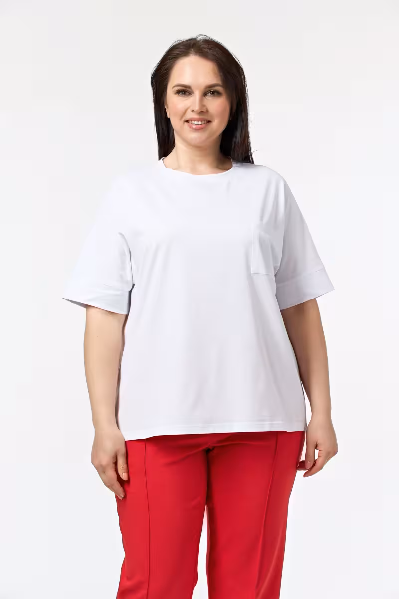 Белая футболка прямого силуэта воплощает философию современного минимализма. Свободный крой не сковывает движений создавая непринужденный casual-образ для городских будней. Накладной карман на груди добавляет функциональности и визуально структурирует простой силуэт.Натуральный хлопок обеспечивает комфорт кожи даже в жаркие дни. Материал дышит мягко облегает фигуру без лишних акцентов. Округлый вырез горловины подчеркивает женственность линии шеи.Универсальность модели раскрывается в сочетаниях. С джинсами создается расслабленный weekend-лук для дружеских встреч. Заправленная в брюки-карандаш футболка трансформируется в основу для офисного стиля в духе casual friday. Многослойность тоже работает – под пиджак или кардиган для деловых образов.Простота кроя компенсируется качеством исполнения. Каждая деталь продумана для долговечности и сохранения формы после стирок. Белый цвет остается актуальным вне сезонов и трендов.