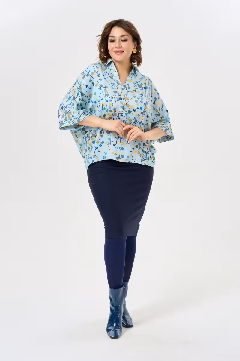 Свободный силуэт позволяет чувствовать себя легко и непринужденно в любой ситуации. Рукава длиной три четверти с изящной отделкой на запястьях добавляют образу элегантности. Универсальная основа для создания разных стилей – от casual до делового.