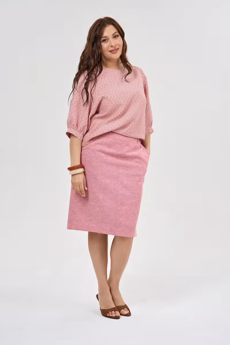 Льняная блузка станет основой для множества летних образов благодаря своему универсальному розовому оттенку и продуманному крою. Свободный силуэт не сковывает движения а натуральный лен обеспечивает превосходную воздухопроницаемость даже в самые жаркие дни. Главная изюминка модели – объемные рукава которые создают эффектный контраст с лаконичным округлым вырезом. Сборки у запястий добавляют образу романтичности и делают силуэт более изящным. Фигурный низ блузки позволяет носить ее навыпуск создавая непринужденный casual-образ.Блузка прекрасно сочетается с джинсами для дружеских встреч с юбкой для создания женственного образа на свидание или с брюками-карандашом для менее формальных деловых встреч. Нежный розовый цвет освежает лицо и подходит для большинства цветотипов. Натуральный лен не только красив но и практичен – материал становится мягче после каждой стирки и отлично переносит активную носку. Эта блузка идеально подойдет для отпуска прогулок по городу или летних вечеринок на открытом воздух