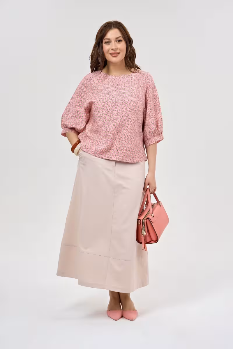 Воздушная блузка из натурального льна в нежном розовом оттенке дарит ощущение легкости летнего утра. Объемные рукава с мягкими сборками у запястий создают романтичный силуэт. Свободный крой позволяет чувствовать себя непринужденно в любой ситуации.