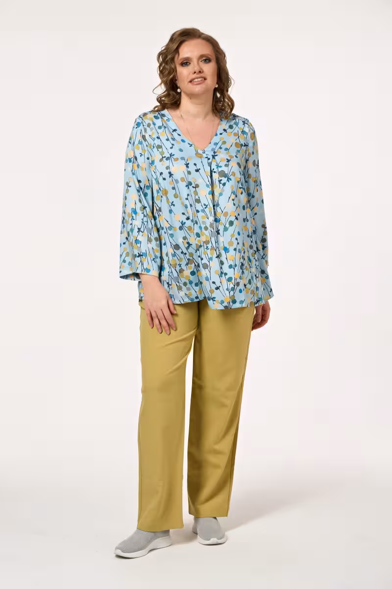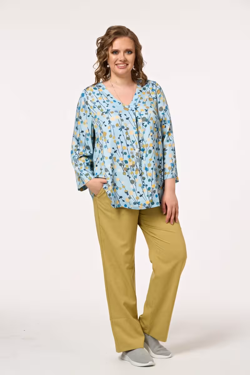 Эта блузка воплощает баланс между комфортом и элегантностью. V-образный вырез визуально удлиняет шею и подчеркивает декольте а свободный силуэт расширяющийся к низу создает легкое и воздушное ощущение. Мягкие складки на передней части добавляют объем и движение делая образ более динамичным. Горловина аккуратно оформлена для идеальной посадки и долговечности изделия.Блузка станет основой для множества образов. В паре с зауженными брюками получается стильный офисный лук а с джинсами-скинни – непринужденный casual для прогулки. Для вечернего выхода можно сочетать с брюками-палаццо и изящными аксессуарами.Качественная ткань обеспечивает приятные тактильные ощущения и сохраняет форму после стирки. Модель подходит для деловых встреч романтических свиданий и повседневных дел. Универсальный крой подчеркивает достоинства фигуры не сковывая движений.
