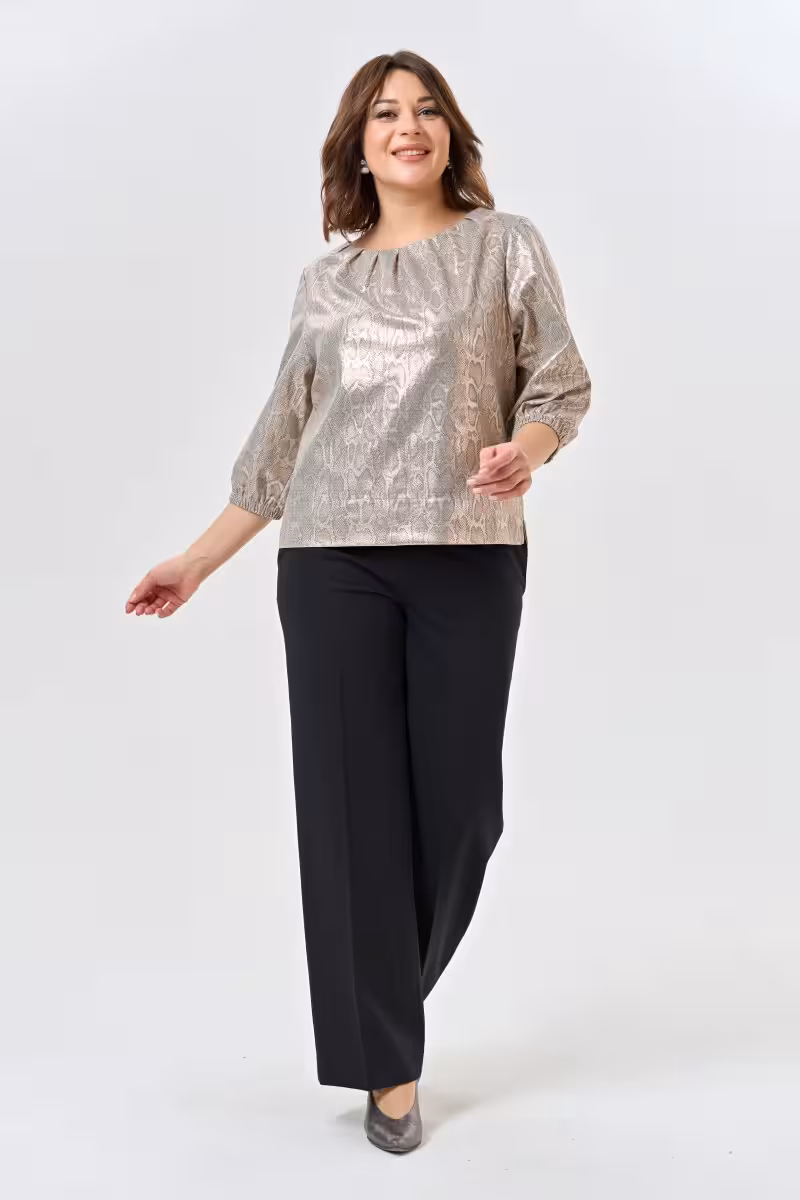 Блузка прямая с мерцающим эффектом и складками
