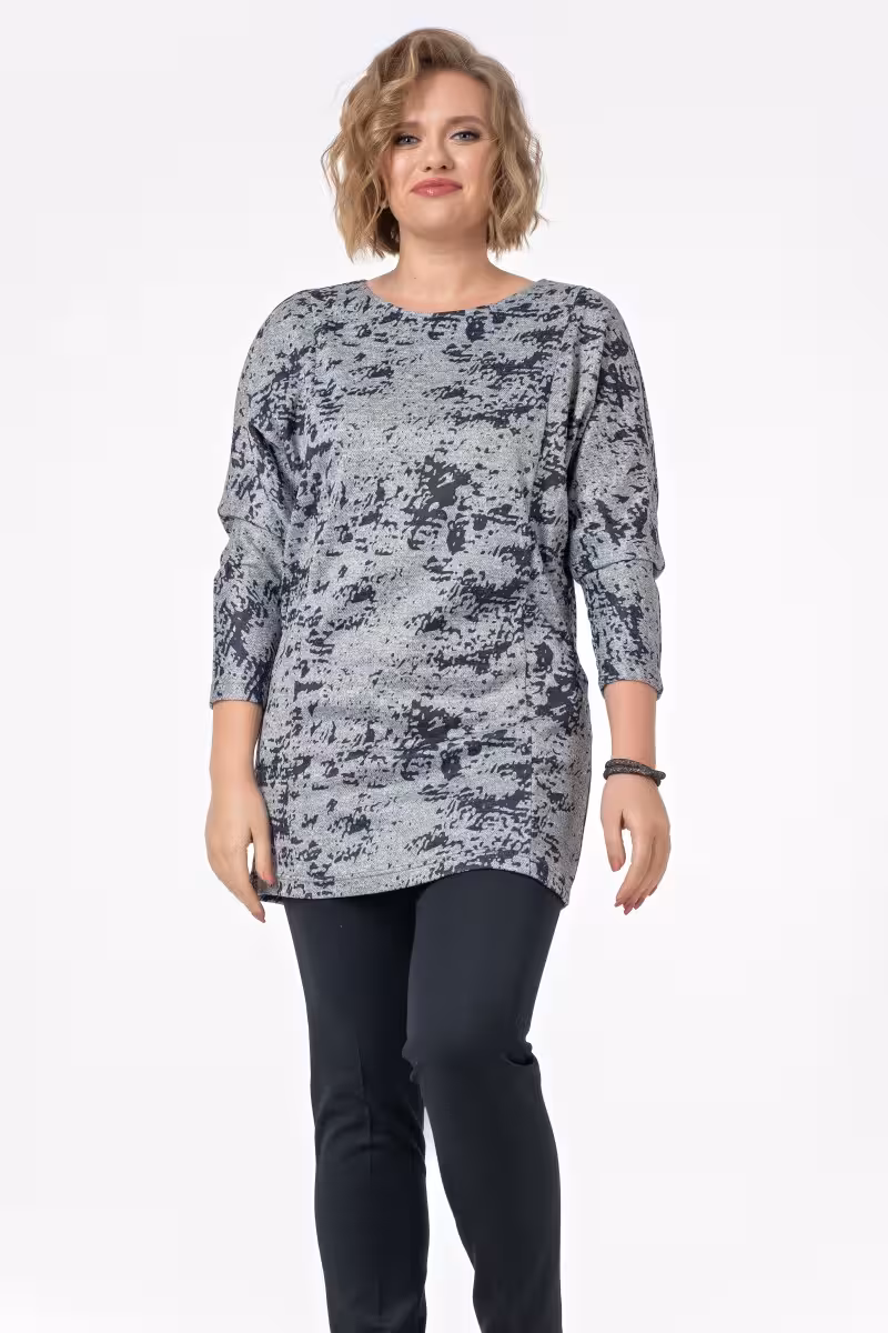 Свободная туника с интересной игрой фактур превращает обычный день в маленькое приключение. Двухслойный низ создает красивое движение при ходьбе а силуэт трапеция мягко обволакивает фигуру.
