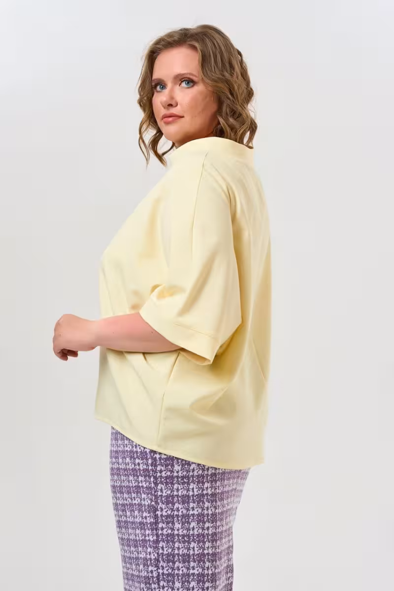Свободный силуэт этой блузки создает непринужденную элегантность позволяя чувствовать себя комфортно в любой ситуации. Рукава длиной три четверти — идеальная золотая середина между классикой и современностью. Они визуально стройнят руки и подходят для любого сезона. Воротник-стойка придает образу структурированность и благородство превращая простую вещь в стильный акцент гардероба.Хлопковая ткань обеспечивает комфорт на протяжении всего дня позволяя коже дышать. Фигурный низ добавляет женственности и делает силуэт более интересным. Эта блузка станет основой для множества образов — от деловых встреч до прогулок по городу.Сочетается с прямыми брюками для офисного лука или зауженными для вечернего выхода. С юбкой-карандаш создает элегантный деловой образ а с джинсами превращается в идеальный выбор для casual-встреч. Универсальность кроя позволяет носить блузку навыпуск или заправлять в брюки создавая разные стилевые решения.